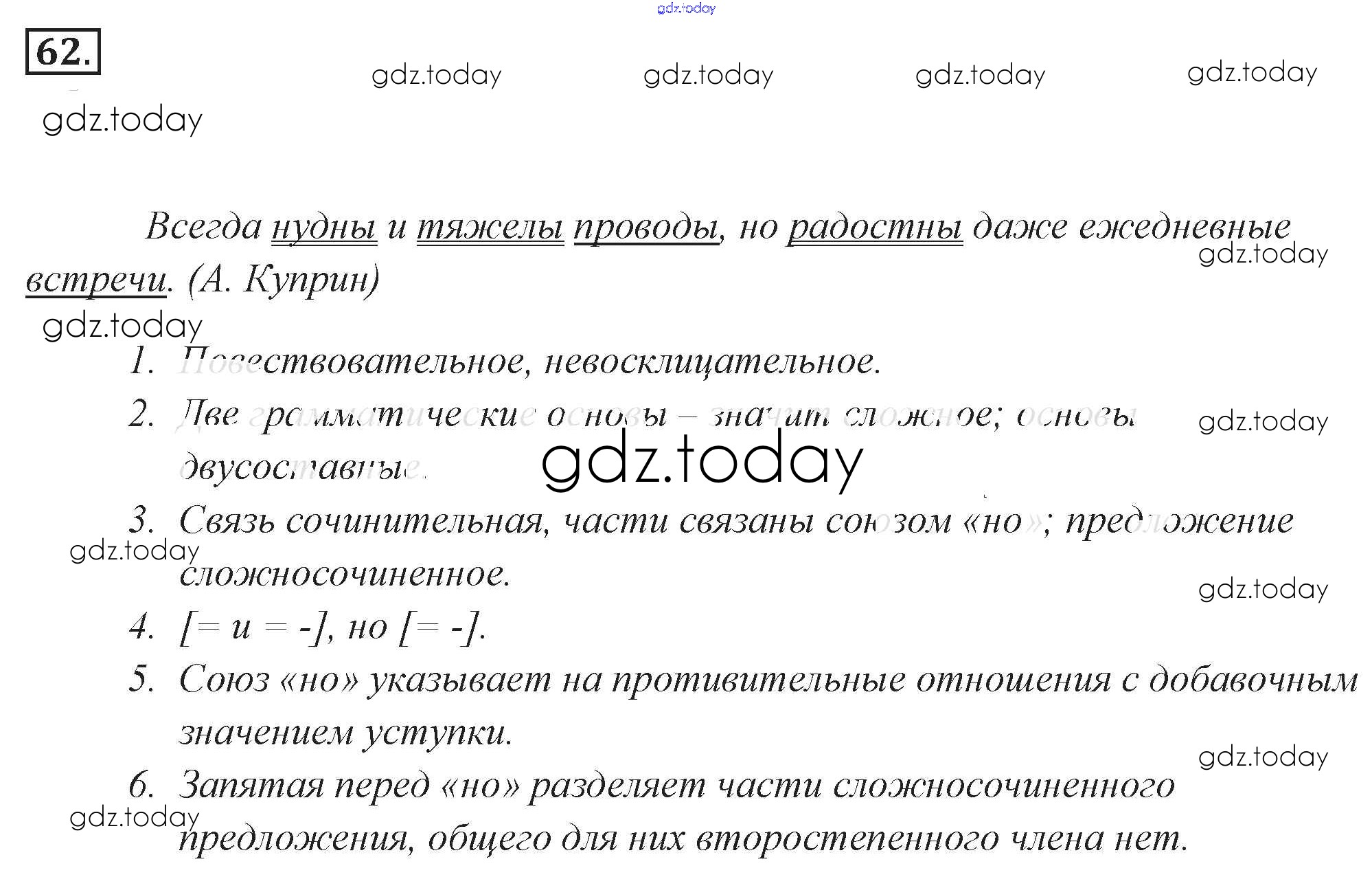На страницах сайта gdz.today вы найдете учебный и вспомогательный материал, направленный на улучшения знаний школьной программы. ГДЗ - онлайн мир знаний Решение. Упражнения 62 Учебнику по Русскому языку для 9 класса Разумовская, Львова Дрофа, Просвещение Вертикаль 2018, 2021