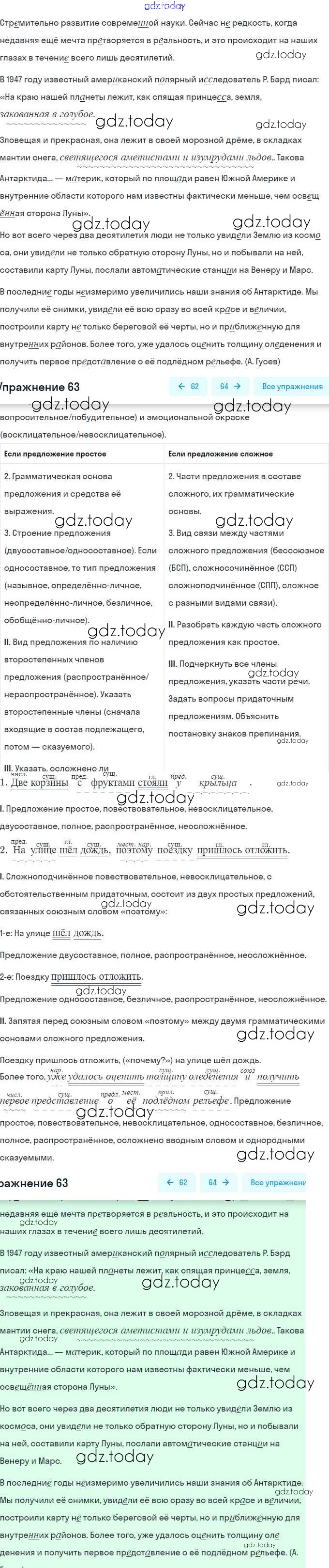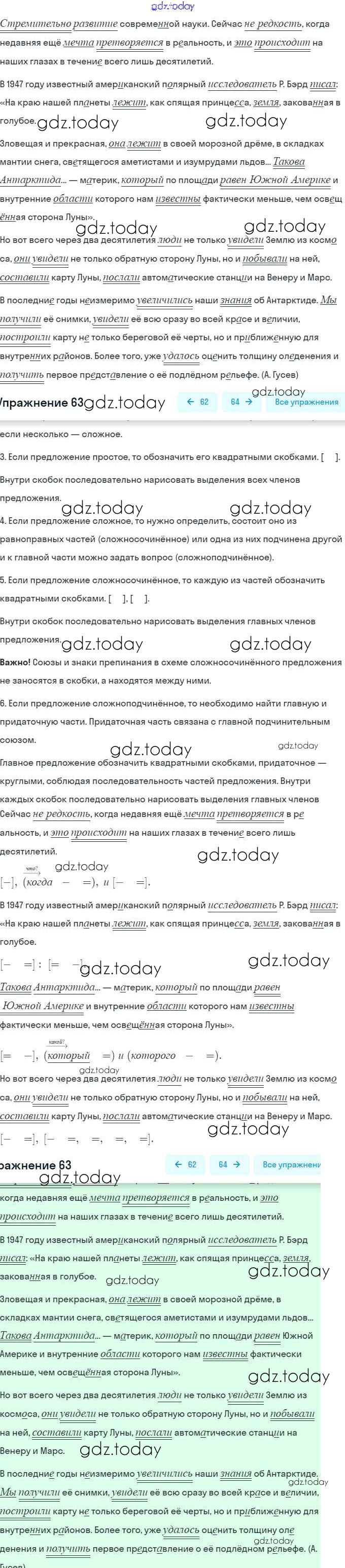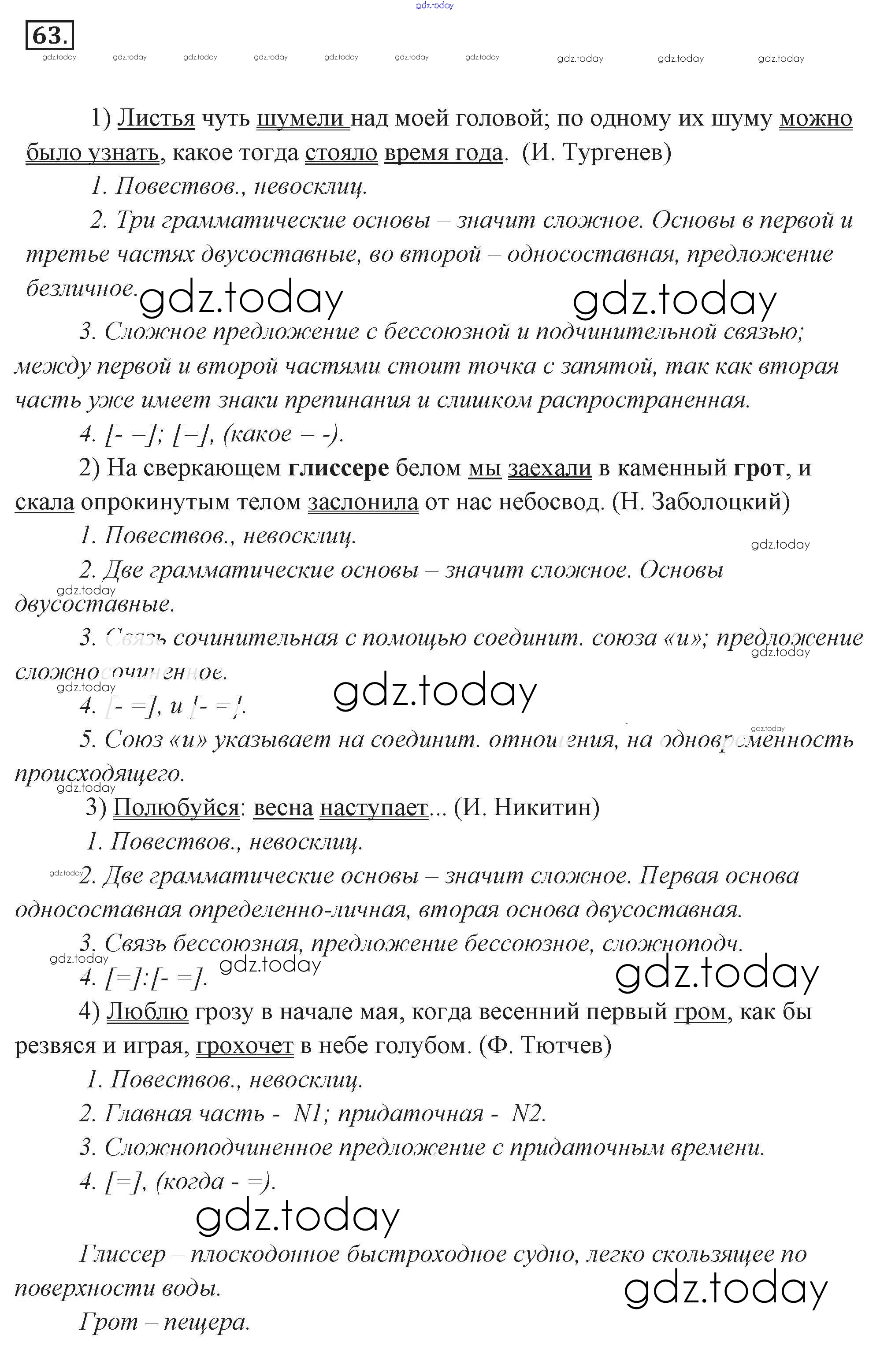 На страницах сайта gdz.today вы найдете учебный и вспомогательный материал, направленный на улучшения знаний школьной программы. ГДЗ - онлайн мир знаний Решение. Упражнения 63 Учебнику по Русскому языку для 9 класса Разумовская, Львова Дрофа, Просвещение Вертикаль 2018, 2021