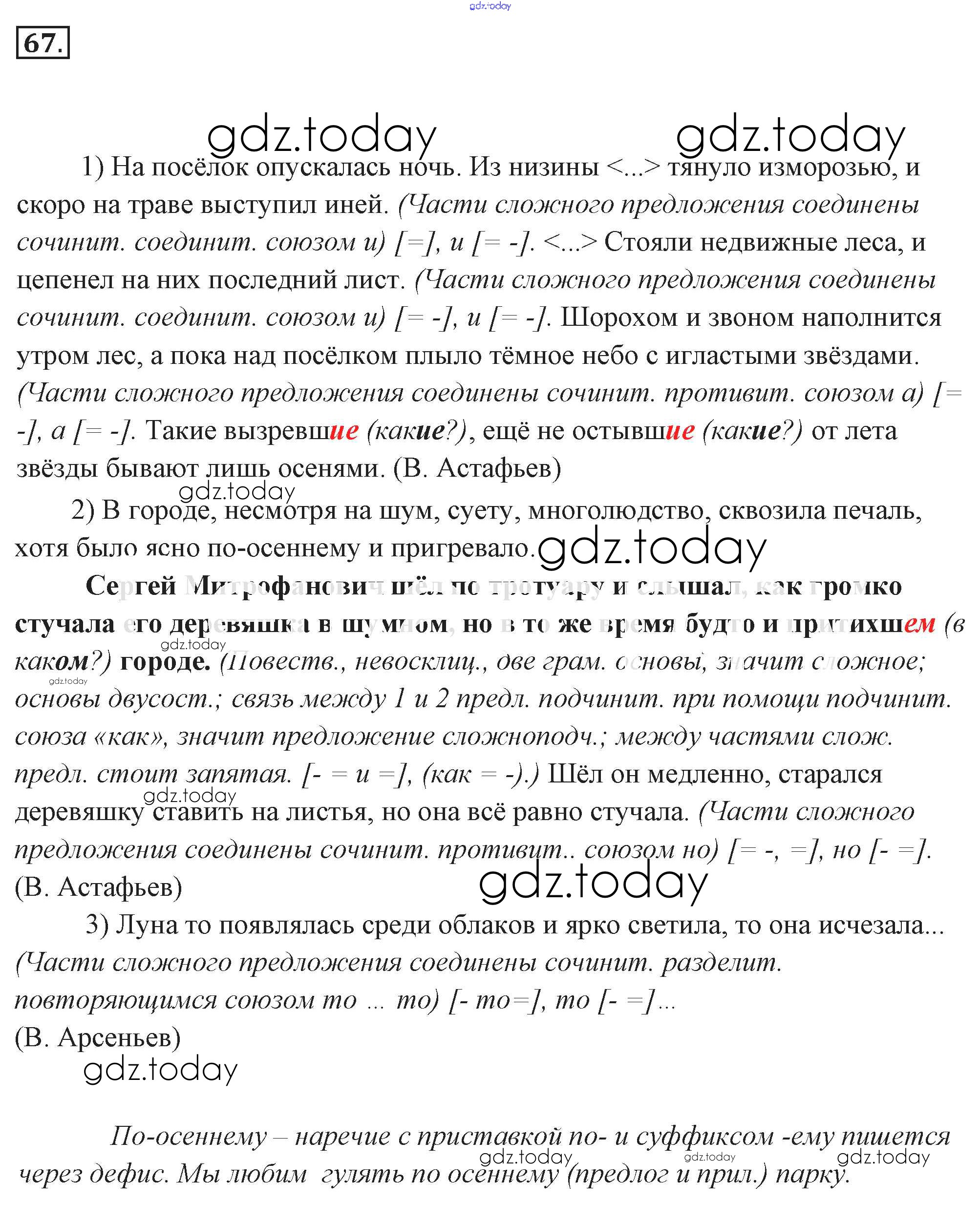 На страницах сайта gdz.today вы найдете учебный и вспомогательный материал, направленный на улучшения знаний школьной программы. ГДЗ - онлайн мир знаний Решение. Упражнения 67 Учебнику по Русскому языку для 9 класса Разумовская, Львова Дрофа, Просвещение Вертикаль 2018, 2021