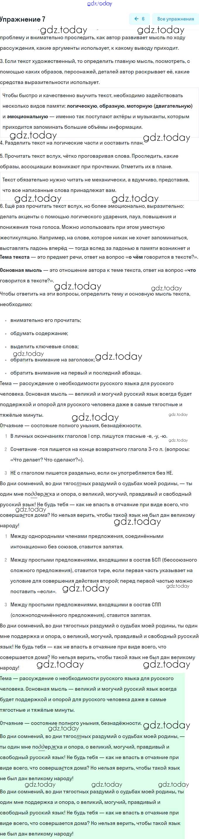 На страницах сайта gdz.today вы найдете учебный и вспомогательный материал, направленный на улучшения знаний школьной программы. ГДЗ - онлайн мир знаний Решение. Упражнения 7 Учебнику по Русскому языку для 9 класса Разумовская, Львова Дрофа, Просвещение Вертикаль 2018, 2021