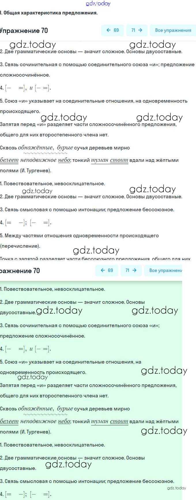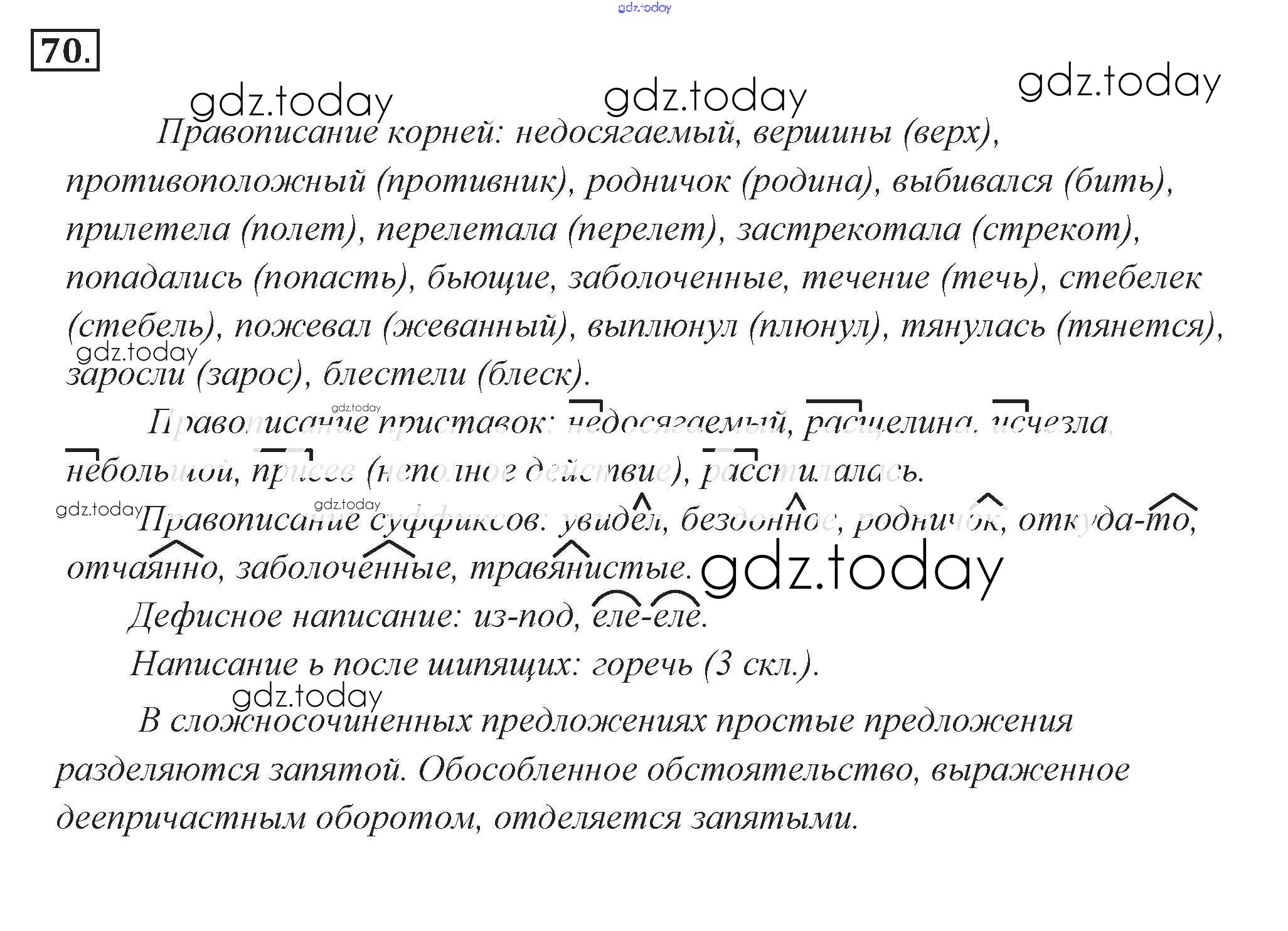 На страницах сайта gdz.today вы найдете учебный и вспомогательный материал, направленный на улучшения знаний школьной программы. ГДЗ - онлайн мир знаний Решение. Упражнения 70 Учебнику по Русскому языку для 9 класса Разумовская, Львова Дрофа, Просвещение Вертикаль 2018, 2021