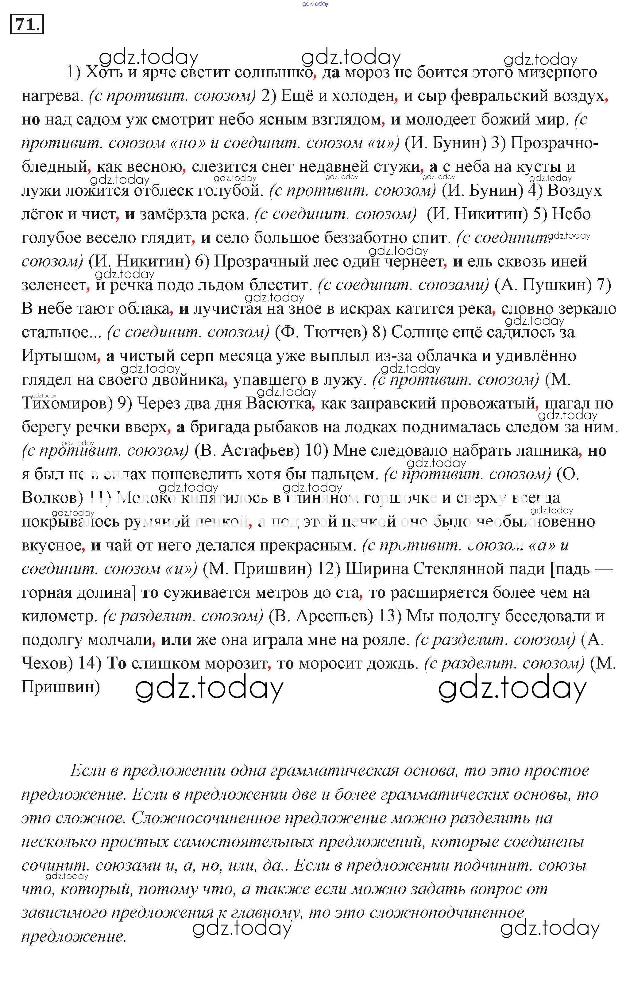На страницах сайта gdz.today вы найдете учебный и вспомогательный материал, направленный на улучшения знаний школьной программы. ГДЗ - онлайн мир знаний Решение. Упражнения 71 Учебнику по Русскому языку для 9 класса Разумовская, Львова Дрофа, Просвещение Вертикаль 2018, 2021
