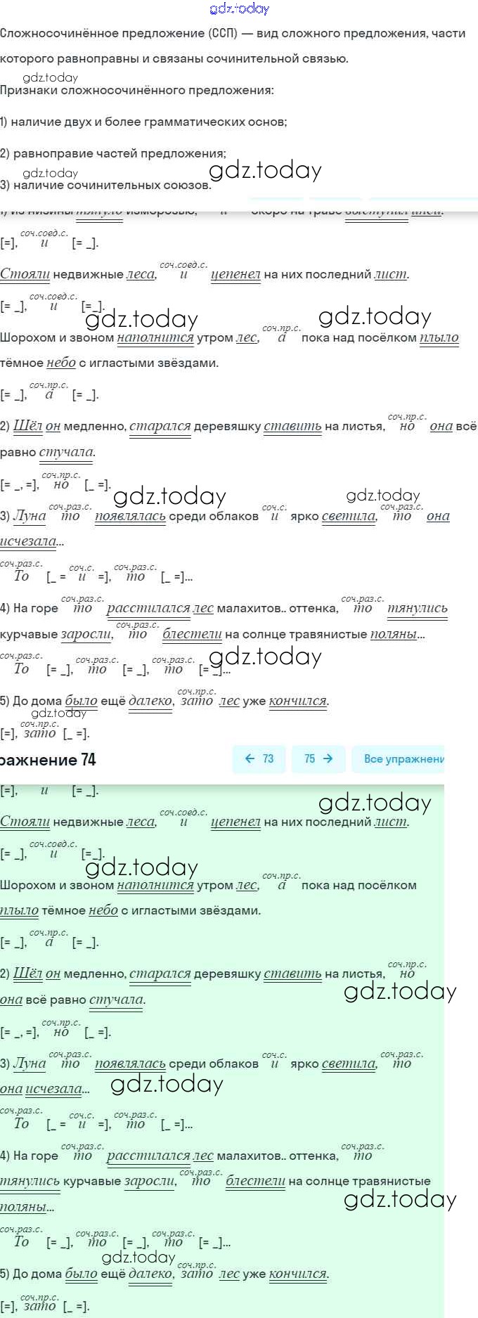 На страницах сайта gdz.today вы найдете учебный и вспомогательный материал, направленный на улучшения знаний школьной программы. ГДЗ - онлайн мир знаний Решение. Упражнения 74 Учебнику по Русскому языку для 9 класса Разумовская, Львова Дрофа, Просвещение Вертикаль 2018, 2021