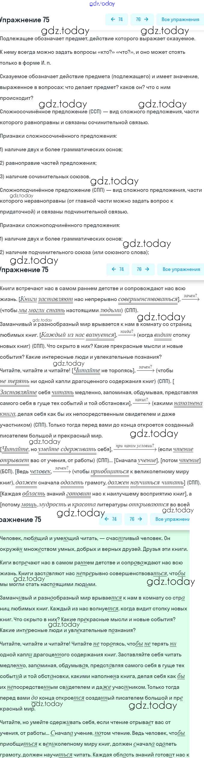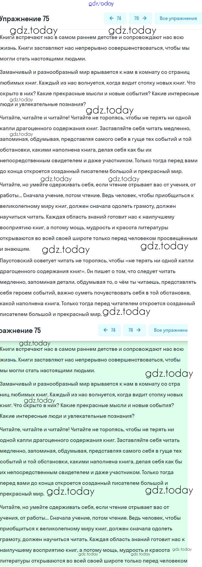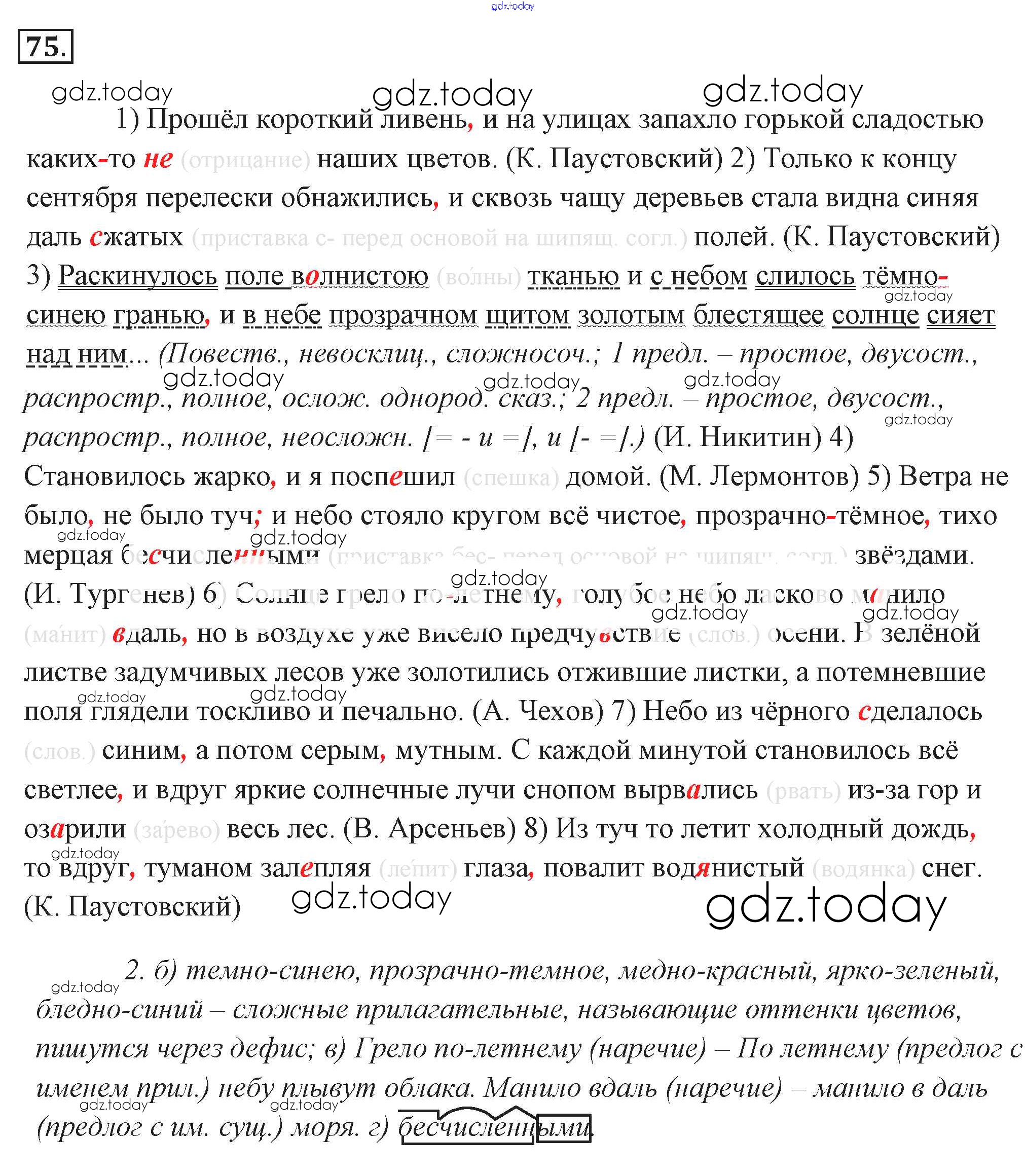 На страницах сайта gdz.today вы найдете учебный и вспомогательный материал, направленный на улучшения знаний школьной программы. ГДЗ - онлайн мир знаний Решение. Упражнения 75 Учебнику по Русскому языку для 9 класса Разумовская, Львова Дрофа, Просвещение Вертикаль 2018, 2021