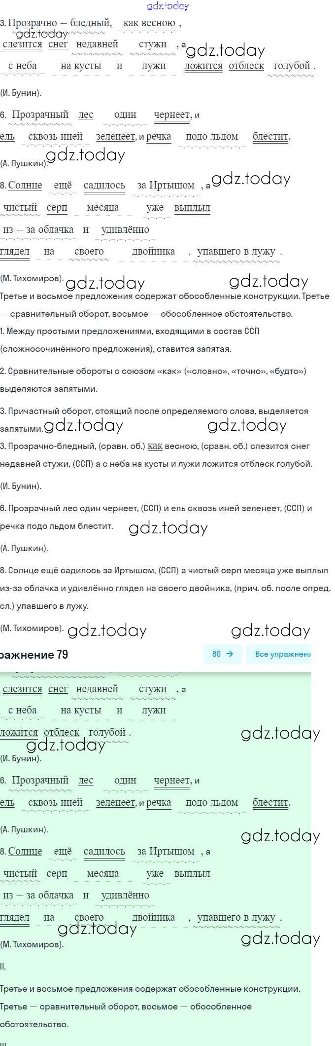 На страницах сайта gdz.today вы найдете учебный и вспомогательный материал, направленный на улучшения знаний школьной программы. ГДЗ - онлайн мир знаний Решение. Упражнения 79 Учебнику по Русскому языку для 9 класса Разумовская, Львова Дрофа, Просвещение Вертикаль 2018, 2021