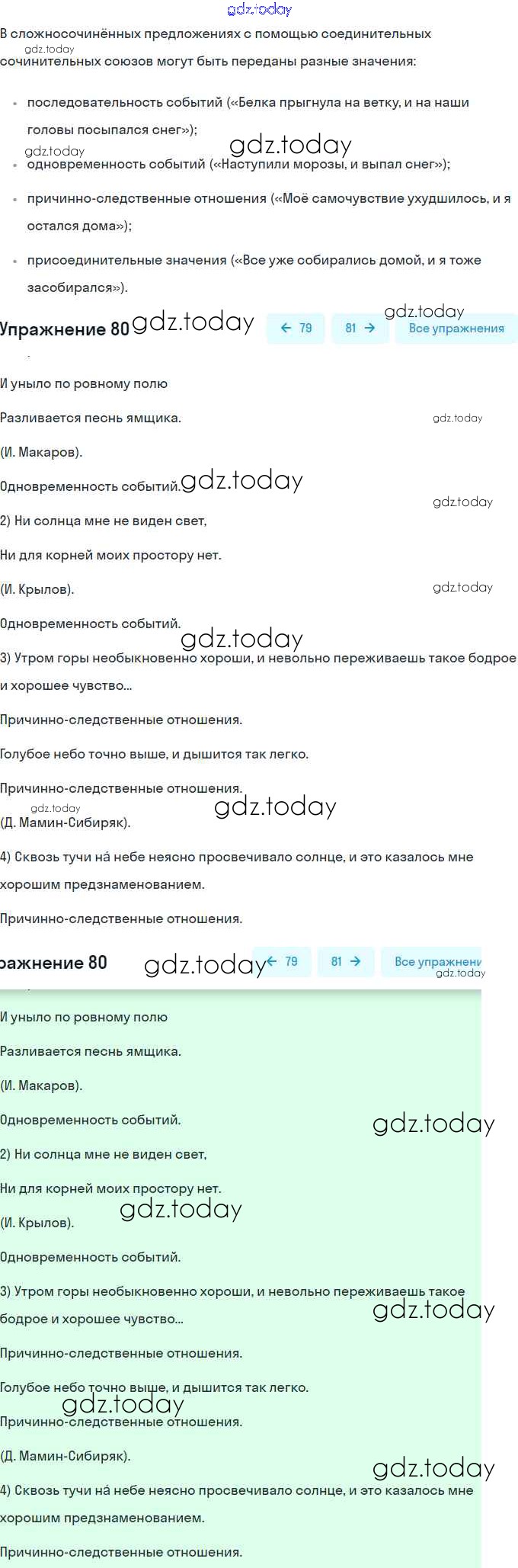 На страницах сайта gdz.today вы найдете учебный и вспомогательный материал, направленный на улучшения знаний школьной программы. ГДЗ - онлайн мир знаний Решение. Упражнения 80 Учебнику по Русскому языку для 9 класса Разумовская, Львова Дрофа, Просвещение Вертикаль 2018, 2021