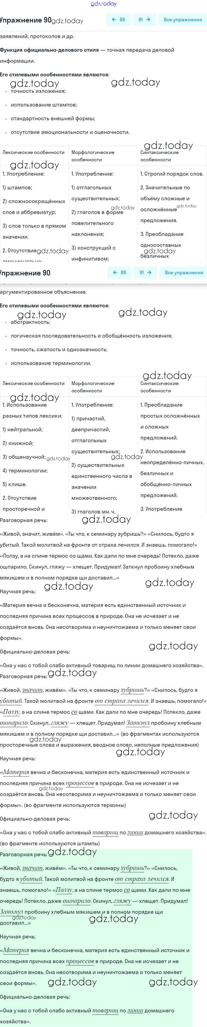 На страницах сайта gdz.today вы найдете учебный и вспомогательный материал, направленный на улучшения знаний школьной программы. ГДЗ - онлайн мир знаний Решение. Упражнения 90 Учебнику по Русскому языку для 9 класса Разумовская, Львова Дрофа, Просвещение Вертикаль 2018, 2021