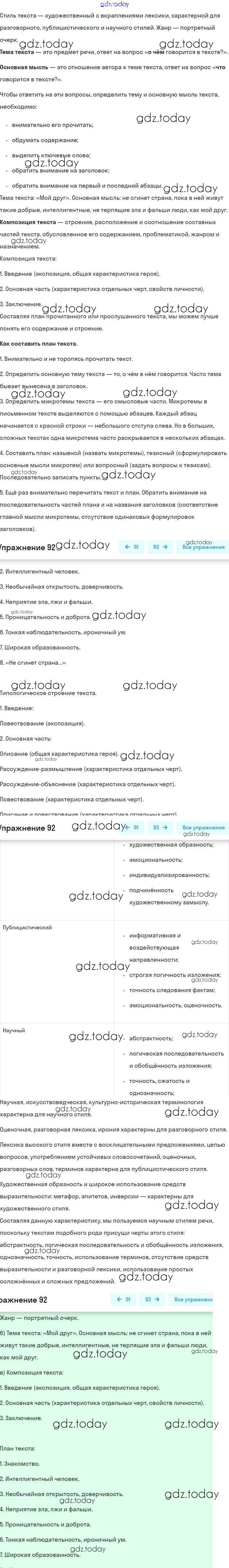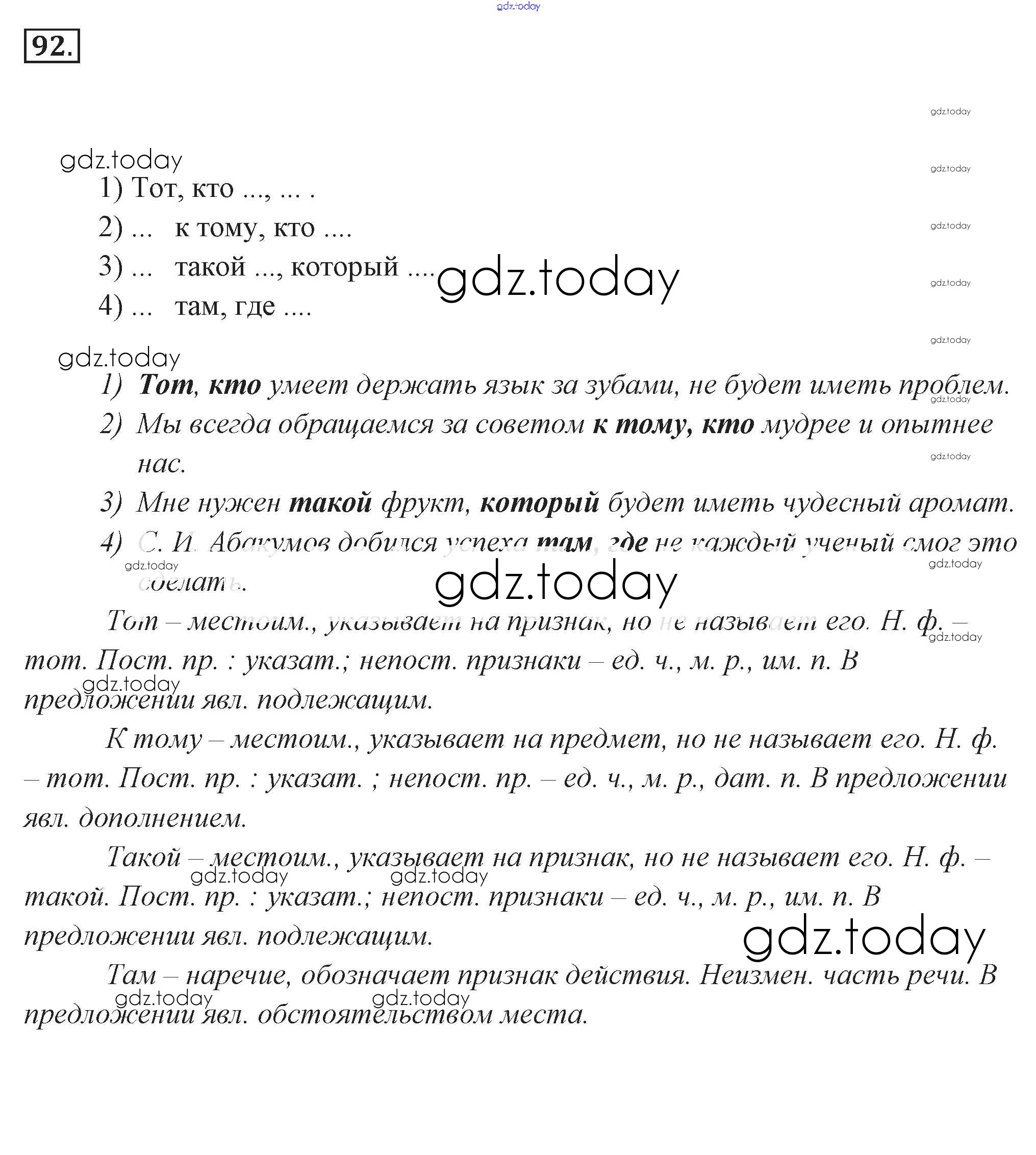 На страницах сайта gdz.today вы найдете учебный и вспомогательный материал, направленный на улучшения знаний школьной программы. ГДЗ - онлайн мир знаний Решение. Упражнения 92 Учебнику по Русскому языку для 9 класса Разумовская, Львова Дрофа, Просвещение Вертикаль 2018, 2021
