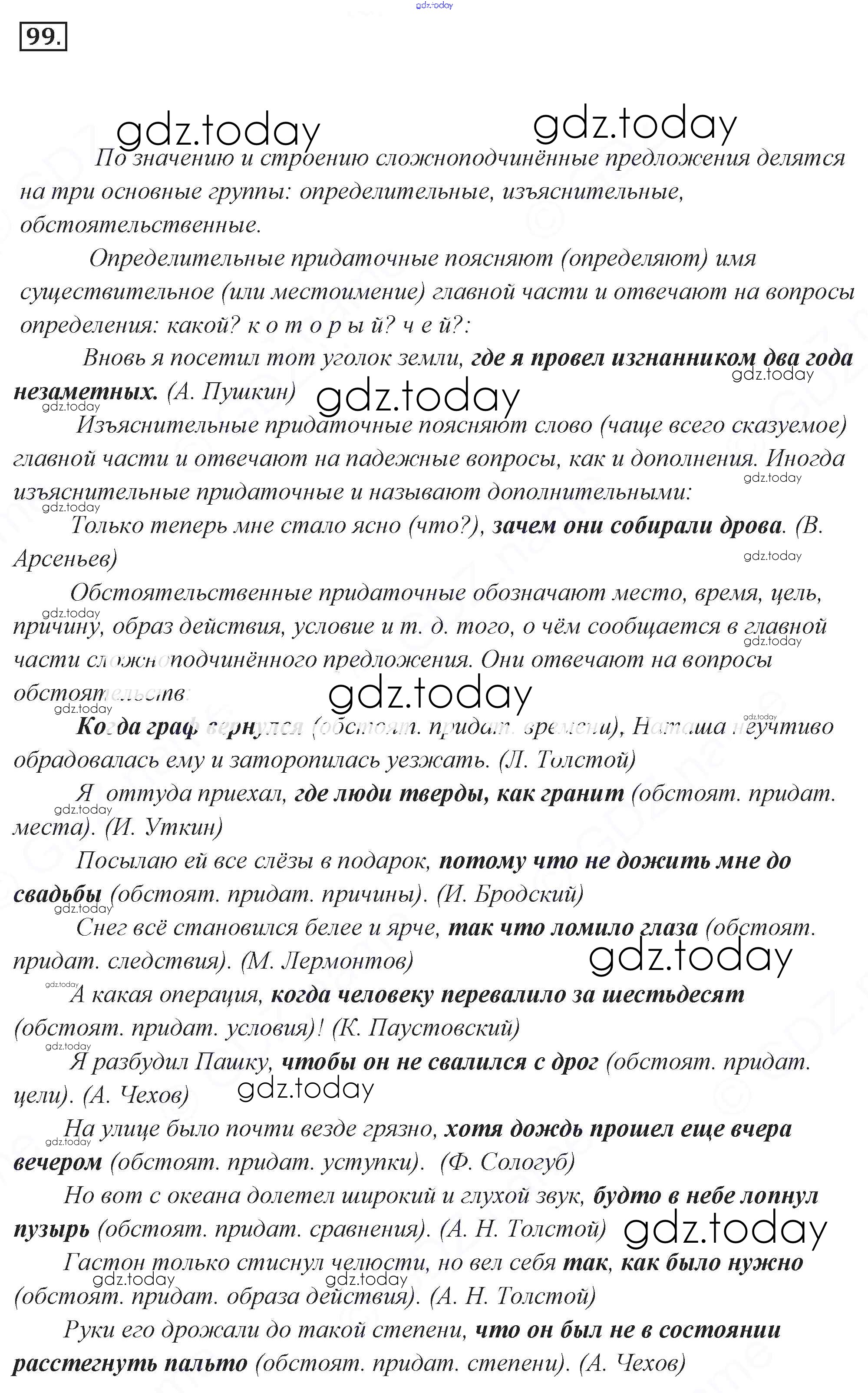 Ответы к Решение. Упражнения 99 Учебнику по Русскому языку для 9 класса Разумовская, Львова Дрофа, Просвещение Вертикаль 2018, 2021