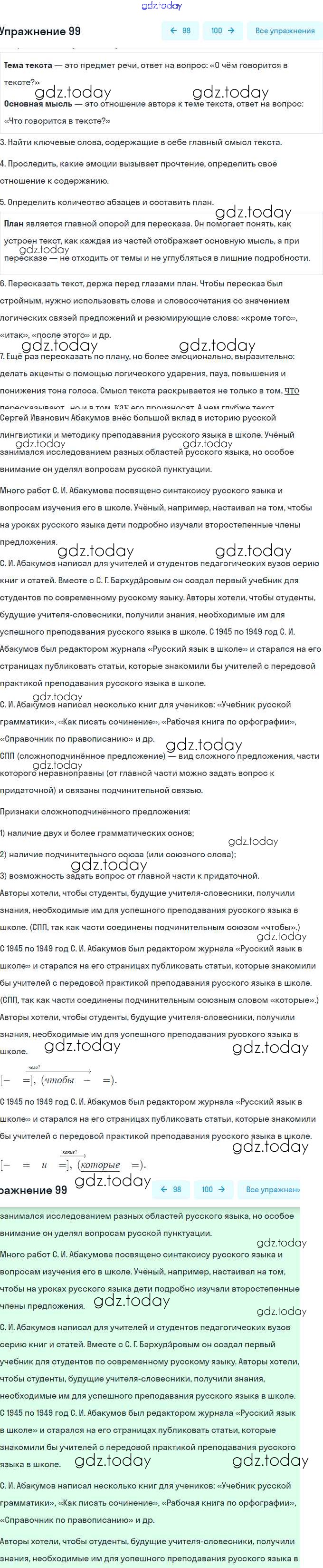 На страницах сайта gdz.today вы найдете учебный и вспомогательный материал, направленный на улучшения знаний школьной программы. ГДЗ - онлайн мир знаний Решение. Упражнения 99 Учебнику по Русскому языку для 9 класса Разумовская, Львова Дрофа, Просвещение Вертикаль 2018, 2021