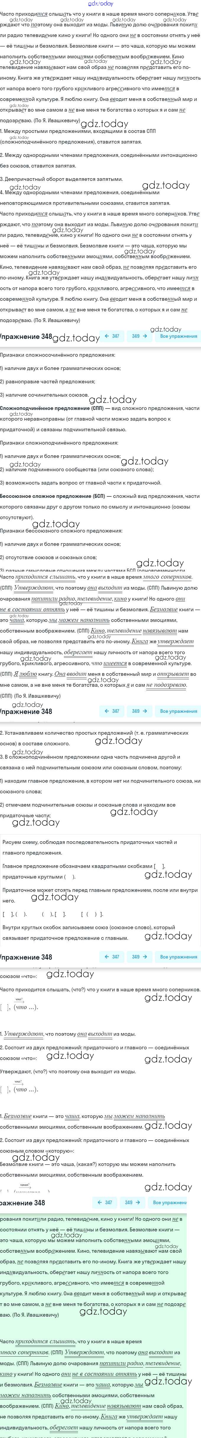 На страницах сайта gdz.today вы найдете учебный и вспомогательный материал, направленный на улучшения знаний школьной программы. ГДЗ - онлайн мир знаний Решение. Упражнения 348 Учебнику по Русскому языку для 9 класса Разумовская, Львова Дрофа, Просвещение Вертикаль 2018, 2021