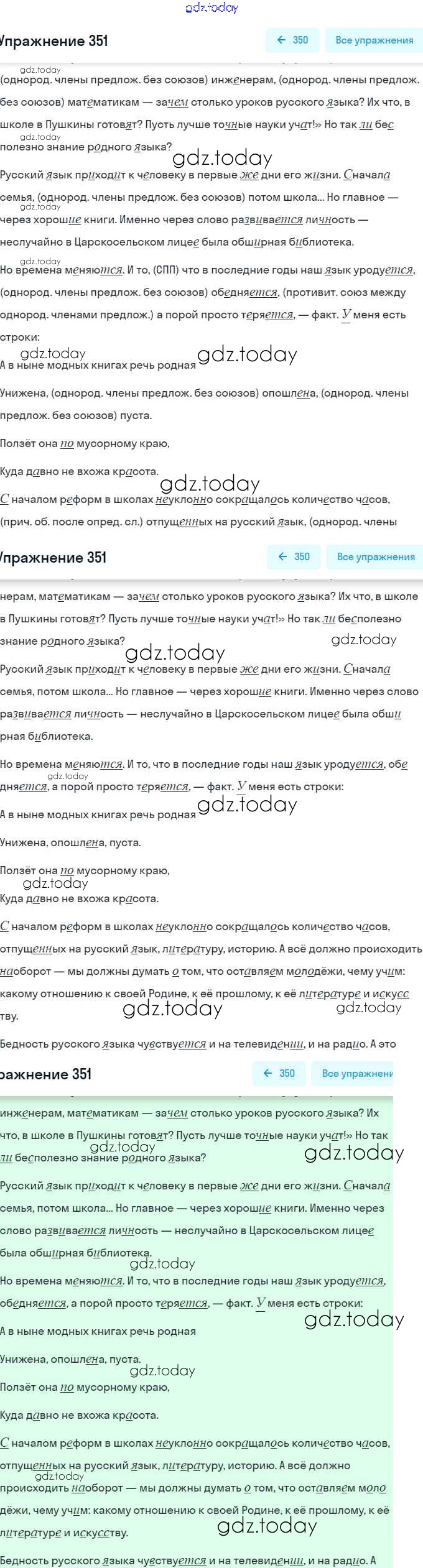 На страницах сайта gdz.today вы найдете учебный и вспомогательный материал, направленный на улучшения знаний школьной программы. ГДЗ - онлайн мир знаний Решение. Упражнения 351 Учебнику по Русскому языку для 9 класса Разумовская, Львова Дрофа, Просвещение Вертикаль 2018, 2021
