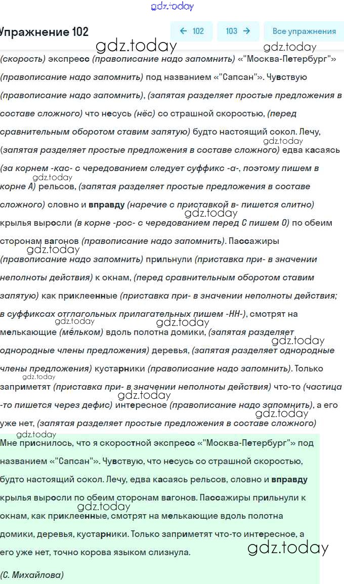 На страницах сайта gdz.today вы найдете учебный и вспомогательный материал, направленный на улучшения знаний школьной программы. ГДЗ - онлайн мир знаний Решение. Упражнения 102 Учебнику по Русскому языку для 9 класса Рыбченкова, Александрова Просвещение УМК 2018