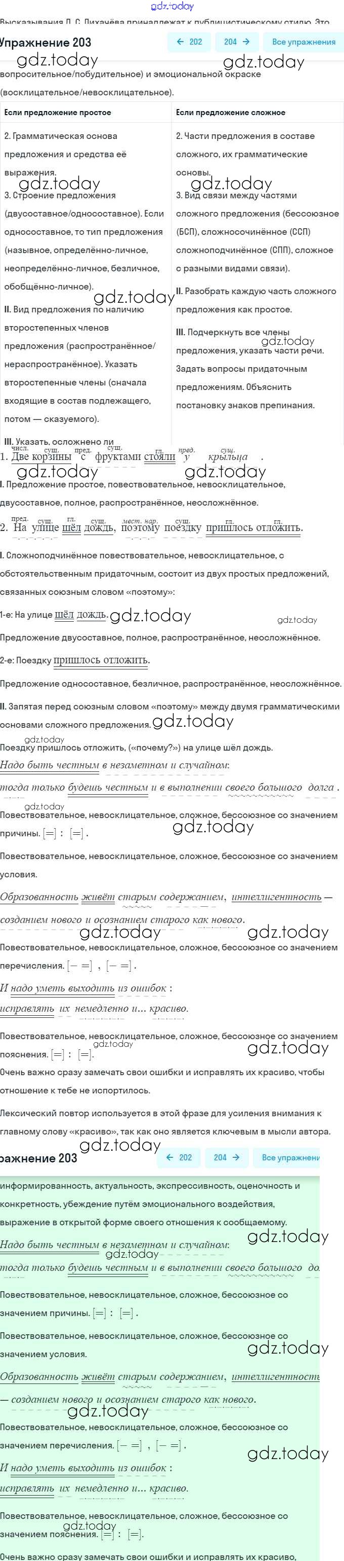 На страницах сайта gdz.today вы найдете учебный и вспомогательный материал, направленный на улучшения знаний школьной программы. ГДЗ - онлайн мир знаний Решение. Упражнения 203 Учебнику по Русскому языку для 9 класса Рыбченкова, Александрова Просвещение УМК 2018