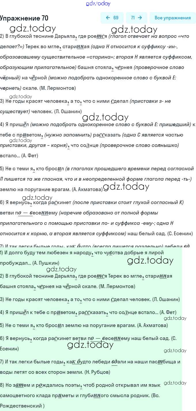 На страницах сайта gdz.today вы найдете учебный и вспомогательный материал, направленный на улучшения знаний школьной программы. ГДЗ - онлайн мир знаний Решение. Упражнения 70 Учебнику по Русскому языку для 9 класса Рыбченкова, Александрова Просвещение УМК 2018