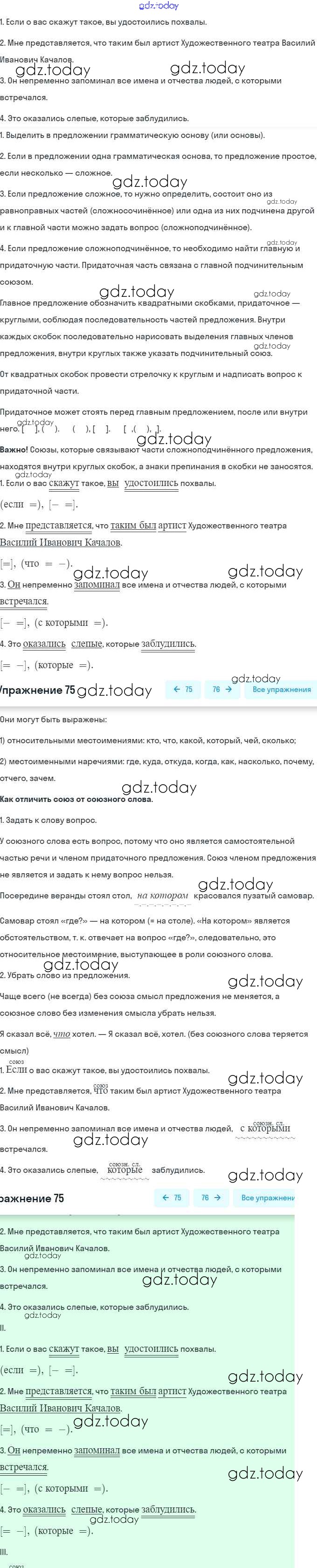 На страницах сайта gdz.today вы найдете учебный и вспомогательный материал, направленный на улучшения знаний школьной программы. ГДЗ - онлайн мир знаний Решение. Упражнения 75 Учебнику по Русскому языку для 9 класса Рыбченкова, Александрова Просвещение УМК 2018