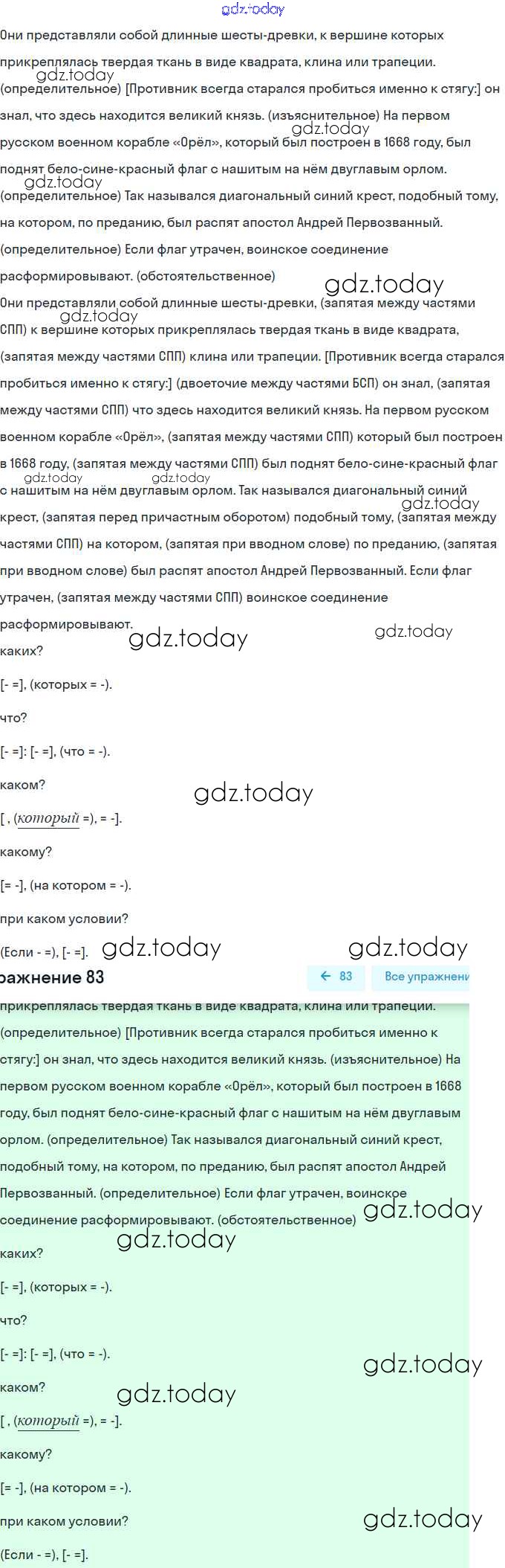 На страницах сайта gdz.today вы найдете учебный и вспомогательный материал, направленный на улучшения знаний школьной программы. ГДЗ - онлайн мир знаний Решение. Упражнения 83 Учебнику по Русскому языку для 9 класса Рыбченкова, Александрова Просвещение УМК 2018