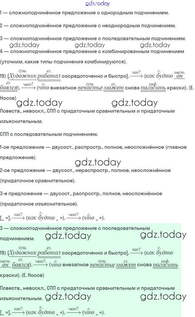 На страницах сайта gdz.today вы найдете учебный и вспомогательный материал, направленный на улучшения знаний школьной программы. ГДЗ - онлайн мир знаний Вариант 1 Сложноподчинённое предложение c несколькими придаточными 19 Тестам, творческим работам, проектам по Русскому языку для 9 класса Нарушевич, Голубева Просвещение 2019