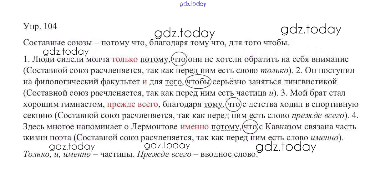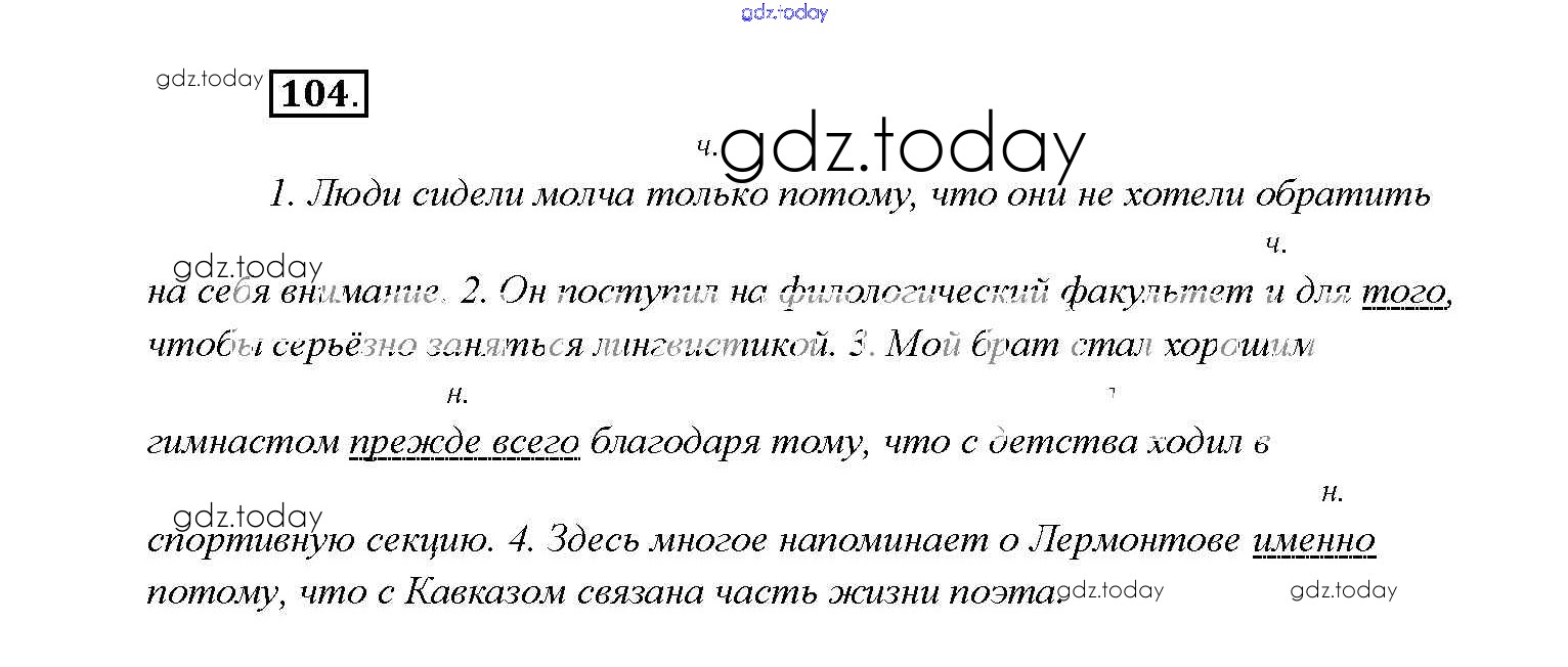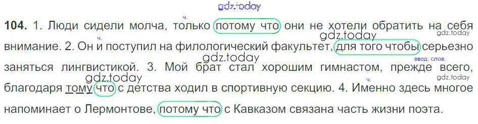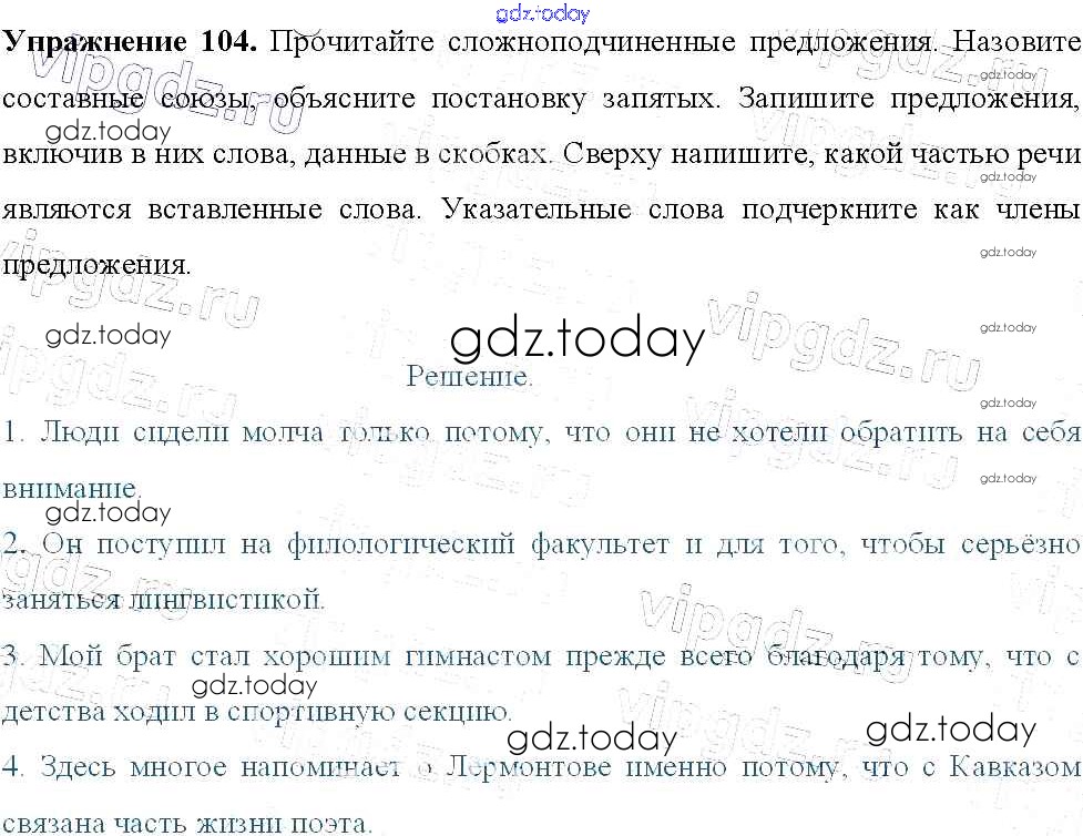 На страницах сайта gdz.today вы найдете учебный и вспомогательный материал, направленный на улучшения знаний школьной программы. ГДЗ - онлайн мир знаний Решение к упражнениям 104 Учебнику по Русскому языку для 9 класса Тростенцова, Ладыженская Просвещение 2014