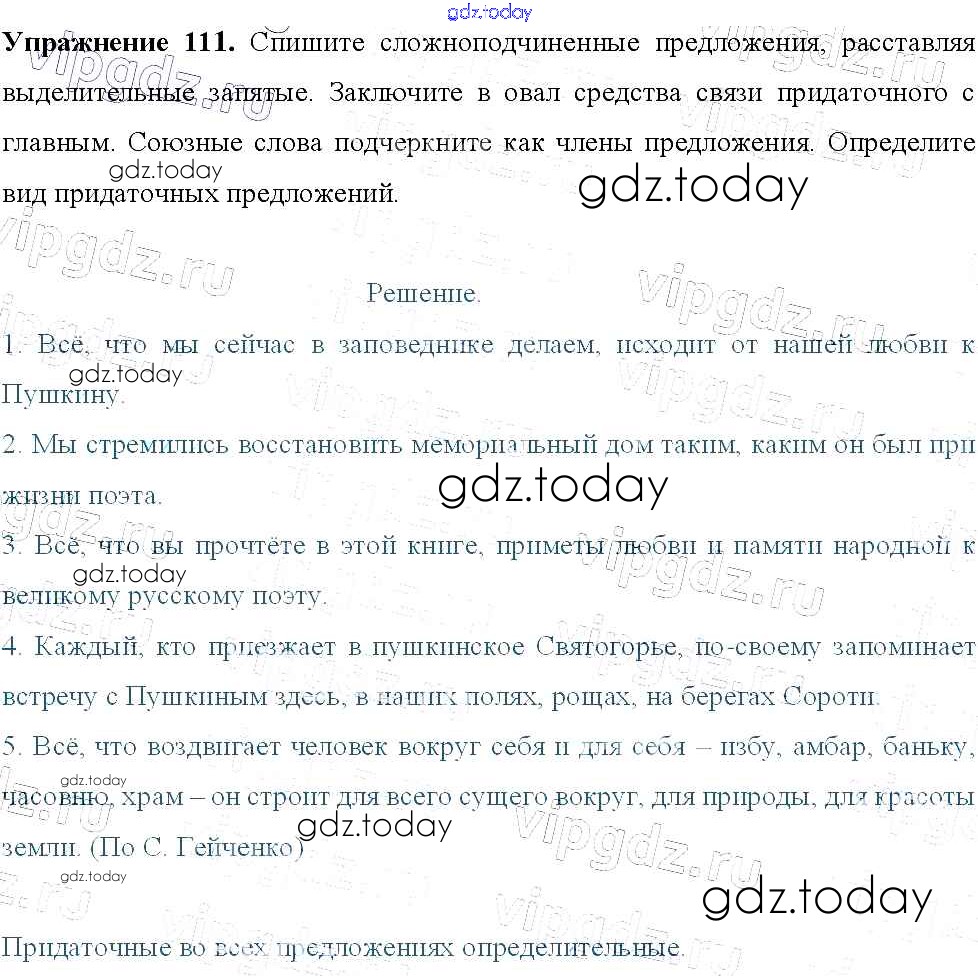 На страницах сайта gdz.today вы найдете учебный и вспомогательный материал, направленный на улучшения знаний школьной программы. ГДЗ - онлайн мир знаний Решение к упражнениям 111 Учебнику по Русскому языку для 9 класса Тростенцова, Ладыженская Просвещение 2014