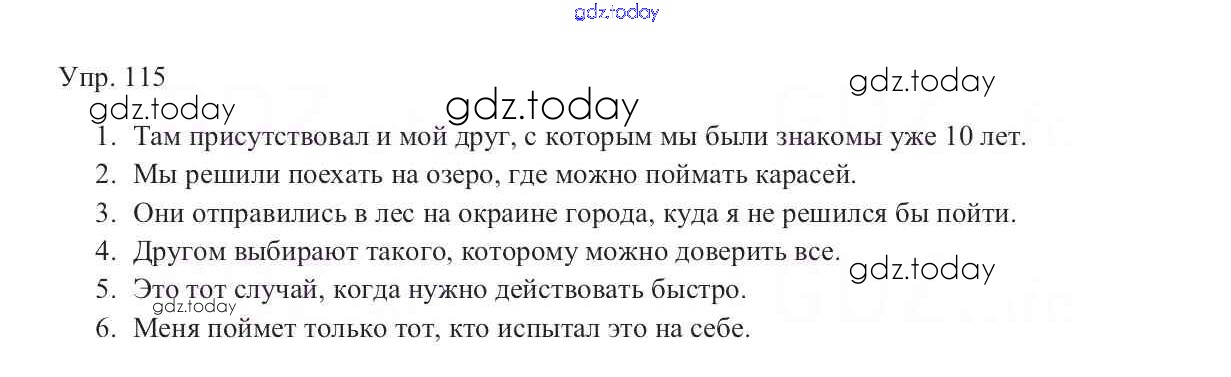 На страницах сайта gdz.today вы найдете учебный и вспомогательный материал, направленный на улучшения знаний школьной программы. ГДЗ - онлайн мир знаний Решение к упражнениям 115 Учебнику по Русскому языку для 9 класса Тростенцова, Ладыженская Просвещение 2014