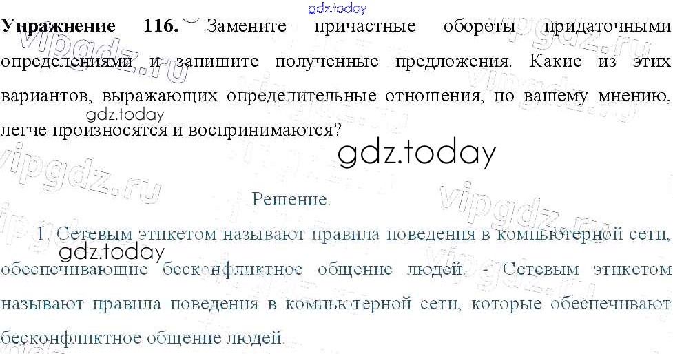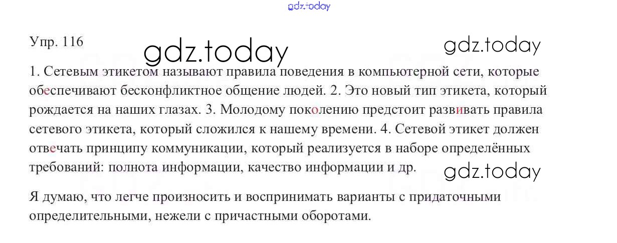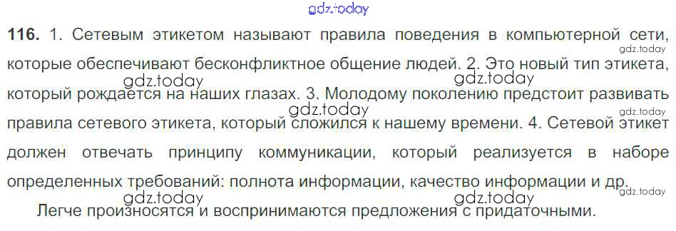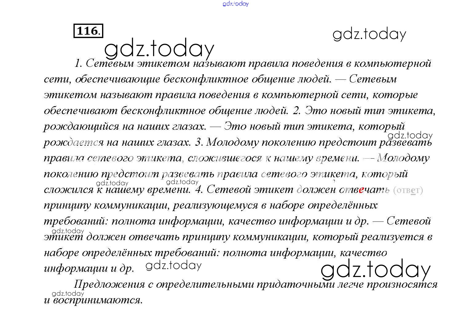 На страницах сайта gdz.today вы найдете учебный и вспомогательный материал, направленный на улучшения знаний школьной программы. ГДЗ - онлайн мир знаний Решение к упражнениям 116 Учебнику по Русскому языку для 9 класса Тростенцова, Ладыженская Просвещение 2014