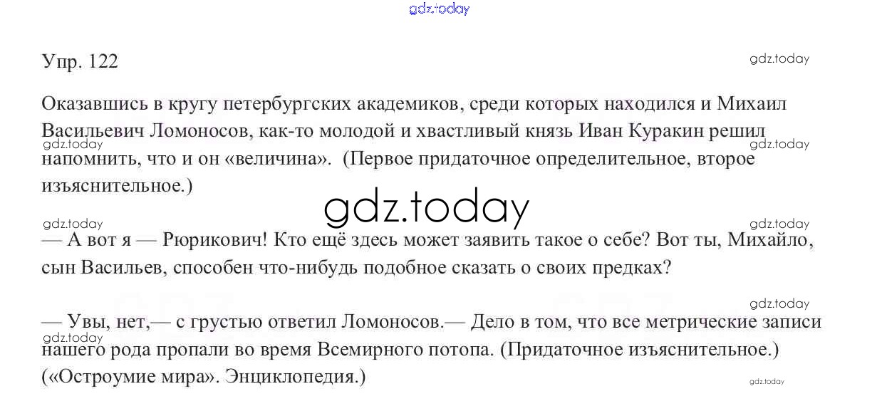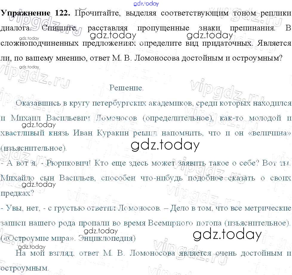 На страницах сайта gdz.today вы найдете учебный и вспомогательный материал, направленный на улучшения знаний школьной программы. ГДЗ - онлайн мир знаний Решение к упражнениям 122 Учебнику по Русскому языку для 9 класса Тростенцова, Ладыженская Просвещение 2014