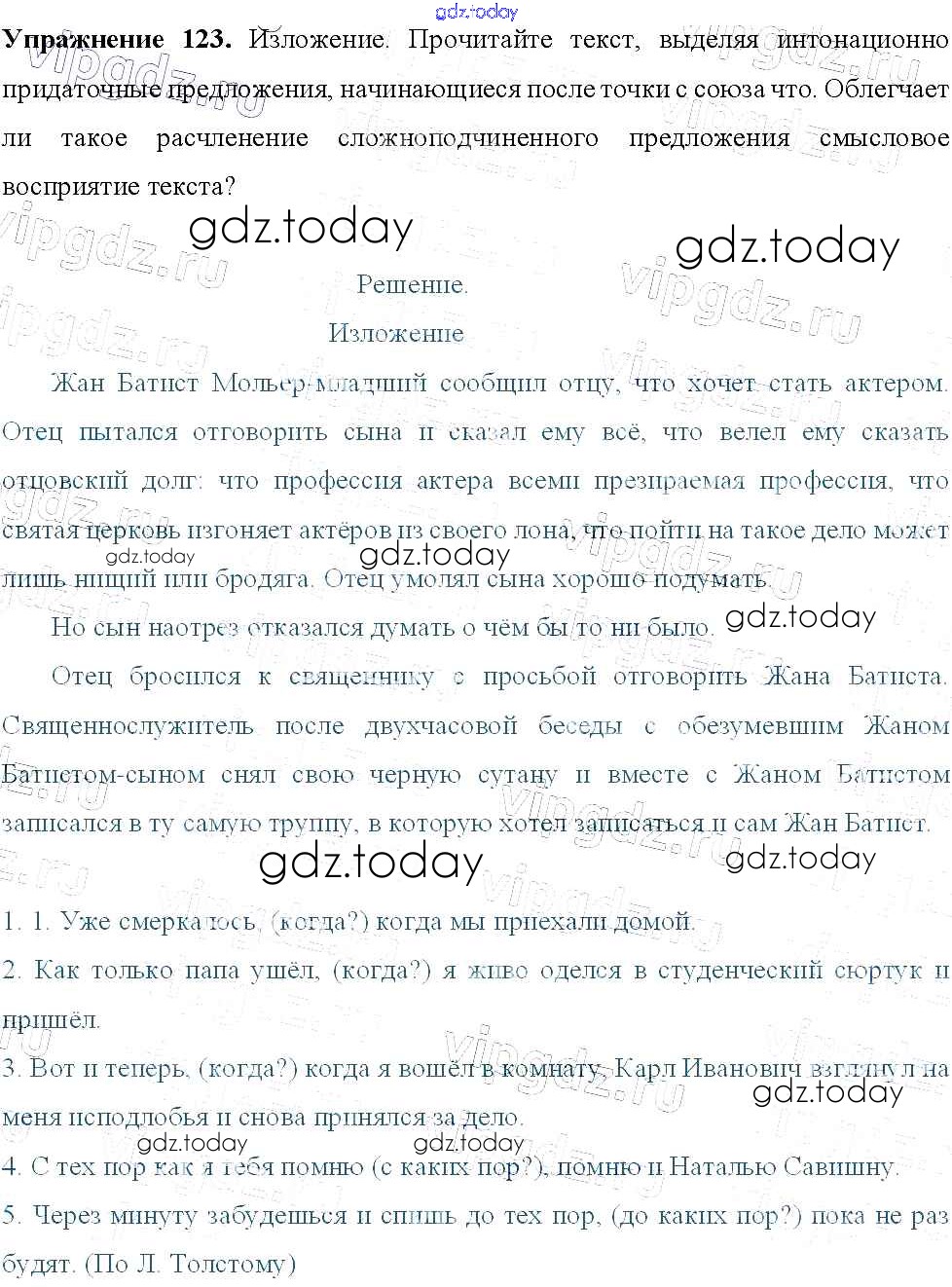 Ответы к Решение к упражнениям 123 Учебнику по Русскому языку для 9 класса Тростенцова, Ладыженская Просвещение 2014