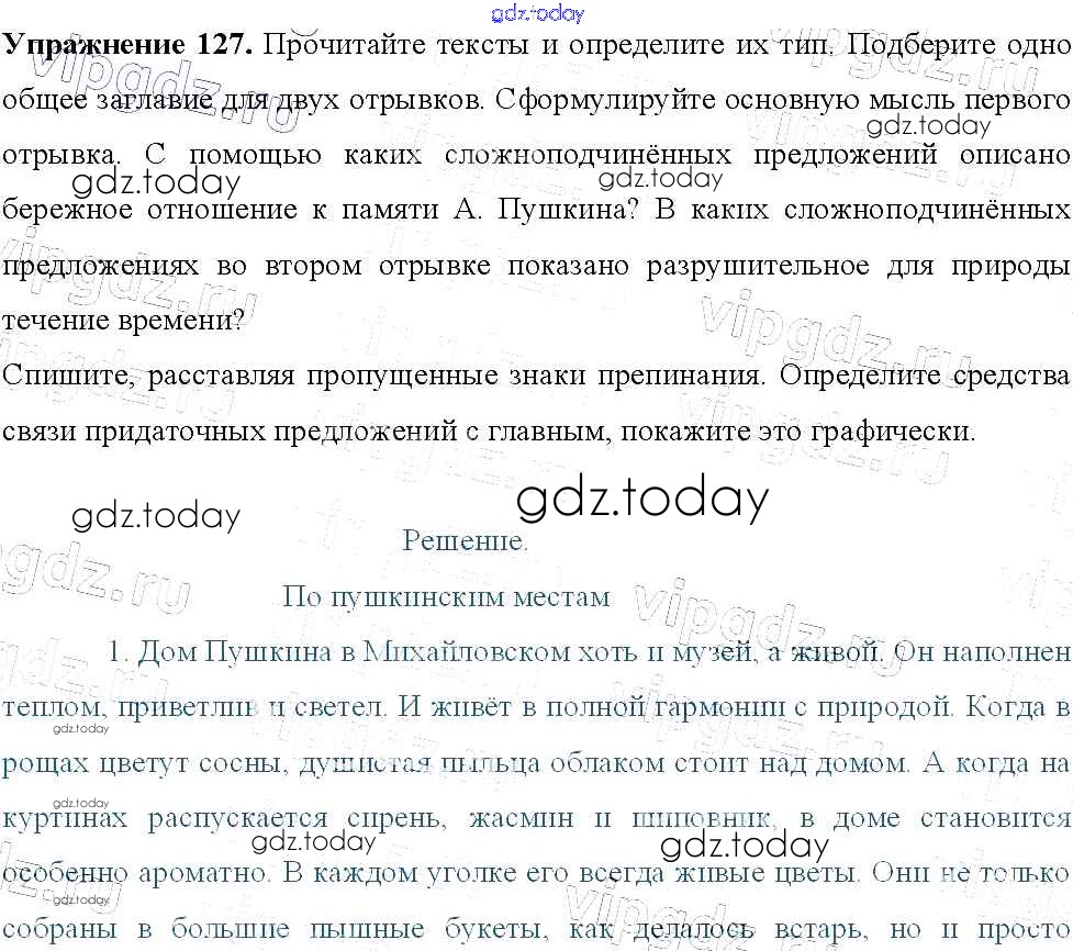 Ответы к Решение к упражнениям 127 Учебнику по Русскому языку для 9 класса Тростенцова, Ладыженская Просвещение 2014
