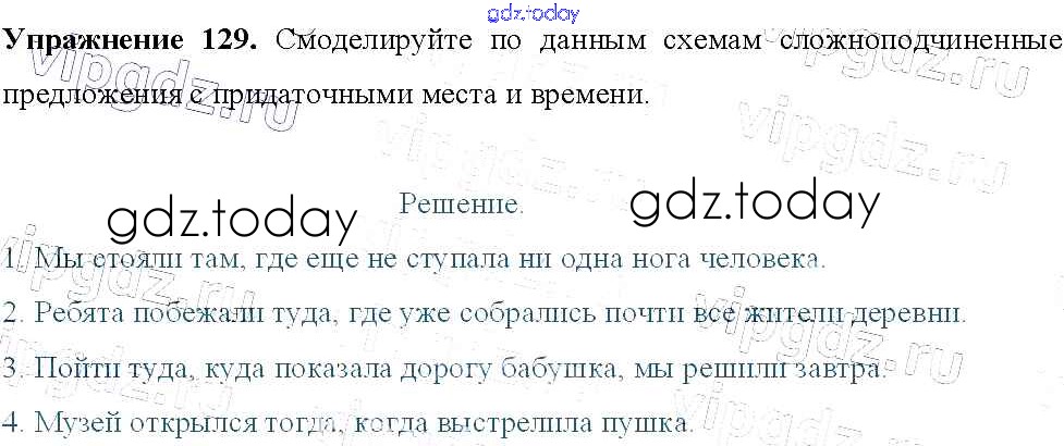На страницах сайта gdz.today вы найдете учебный и вспомогательный материал, направленный на улучшения знаний школьной программы. ГДЗ - онлайн мир знаний Решение к упражнениям 129 Учебнику по Русскому языку для 9 класса Тростенцова, Ладыженская Просвещение 2014