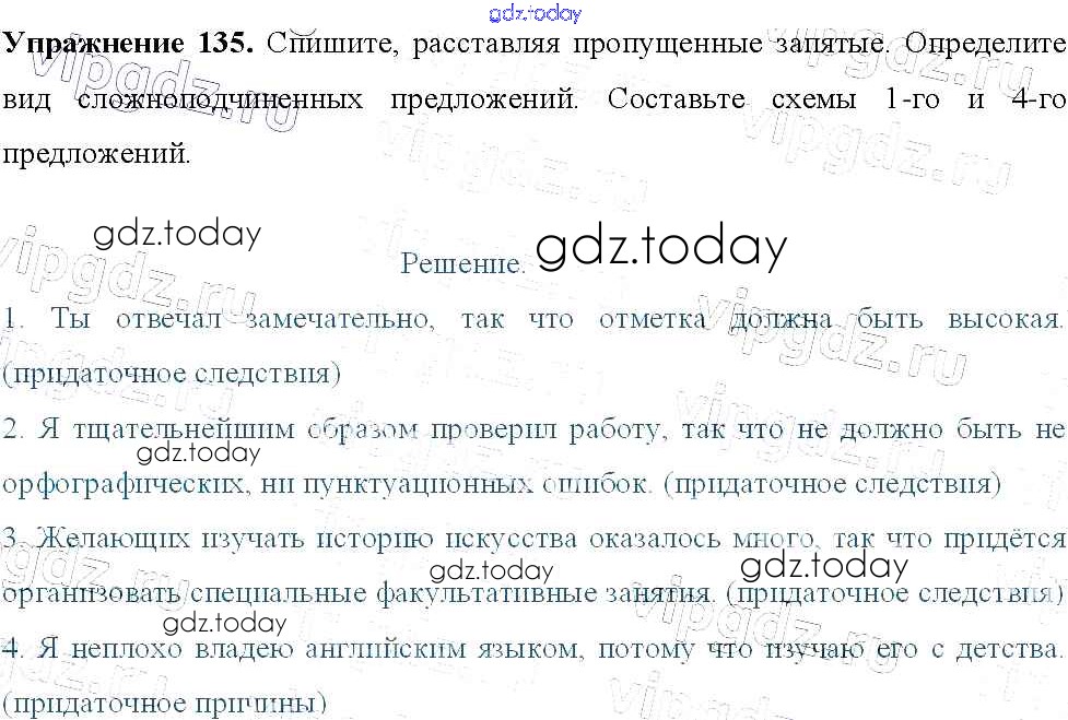 На страницах сайта gdz.today вы найдете учебный и вспомогательный материал, направленный на улучшения знаний школьной программы. ГДЗ - онлайн мир знаний Решение к упражнениям 135 Учебнику по Русскому языку для 9 класса Тростенцова, Ладыженская Просвещение 2014