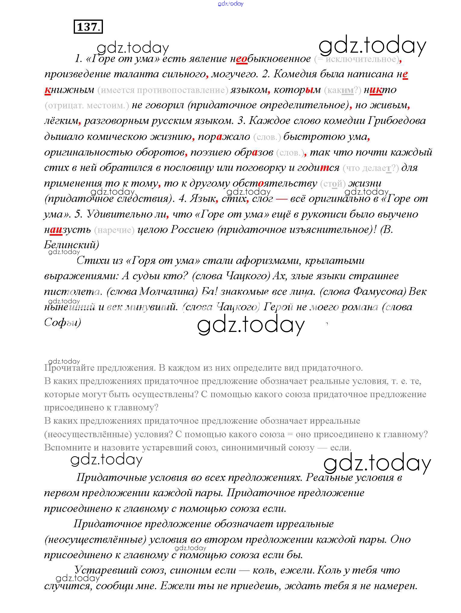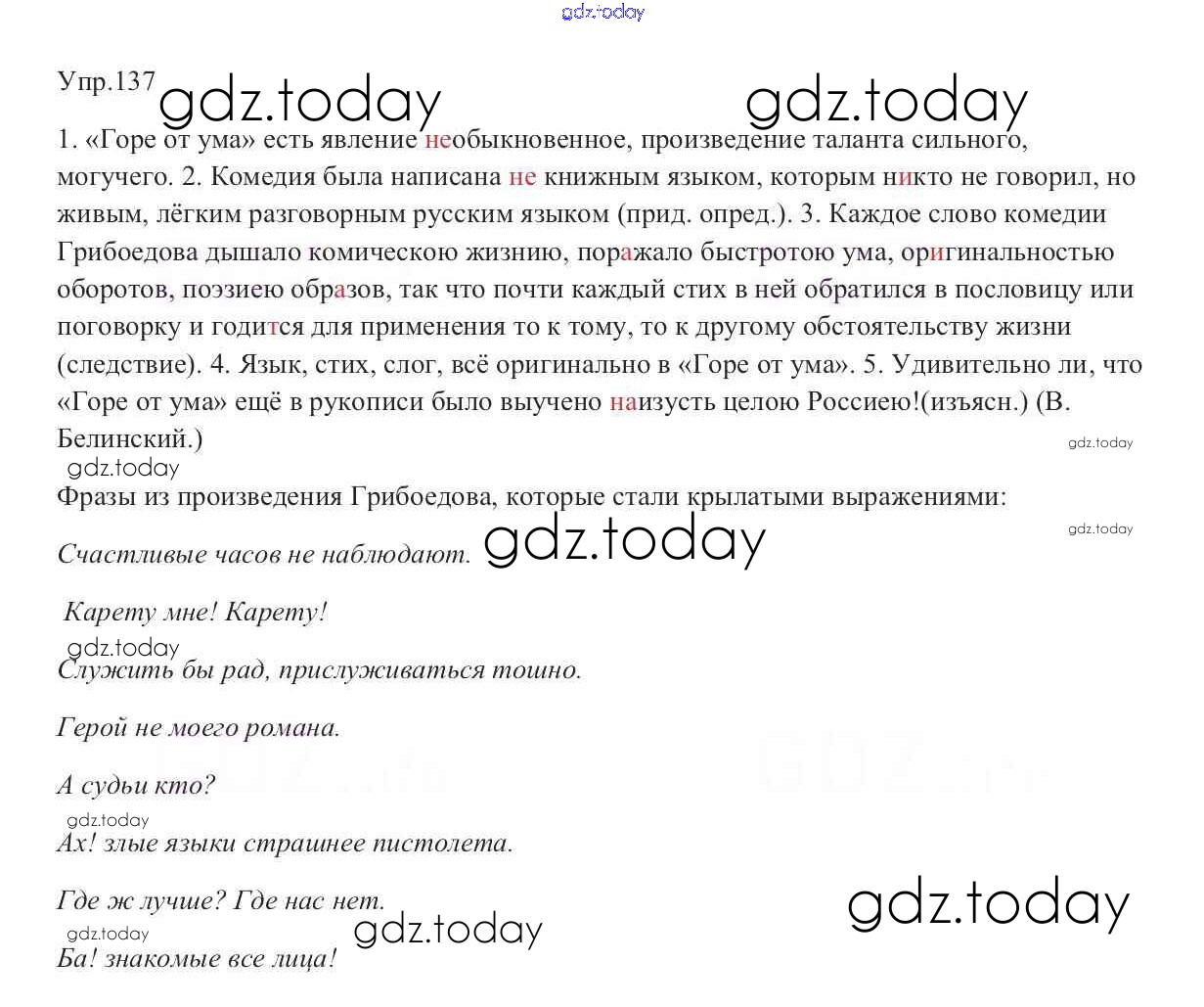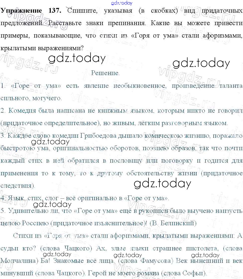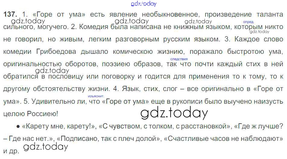 На страницах сайта gdz.today вы найдете учебный и вспомогательный материал, направленный на улучшения знаний школьной программы. ГДЗ - онлайн мир знаний Решение к упражнениям 137 Учебнику по Русскому языку для 9 класса Тростенцова, Ладыженская Просвещение 2014