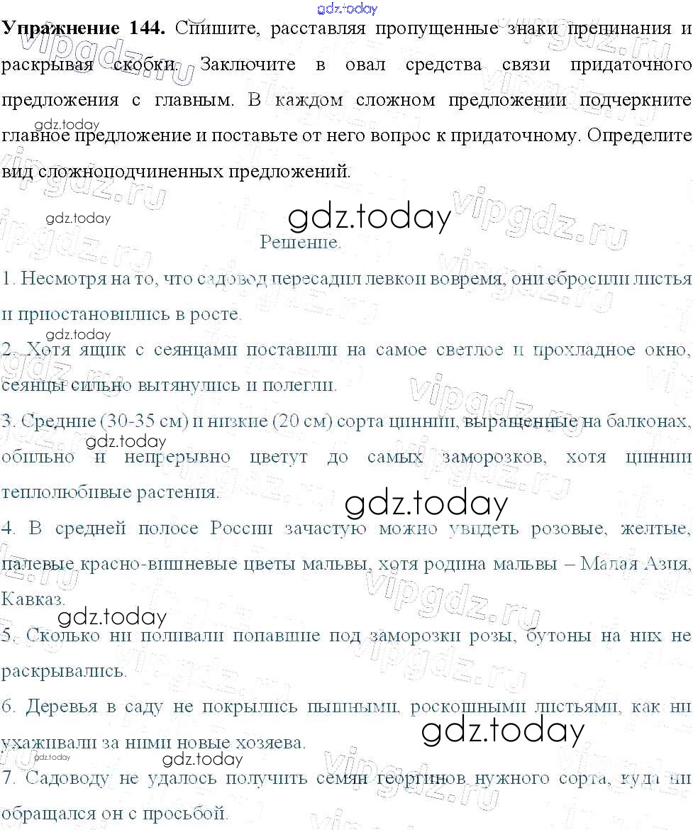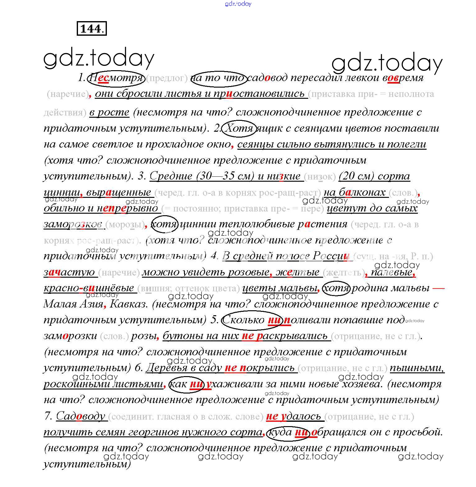 На страницах сайта gdz.today вы найдете учебный и вспомогательный материал, направленный на улучшения знаний школьной программы. ГДЗ - онлайн мир знаний Решение к упражнениям 144 Учебнику по Русскому языку для 9 класса Тростенцова, Ладыженская Просвещение 2014