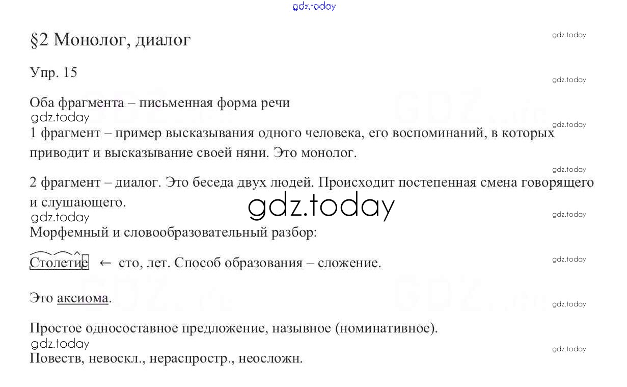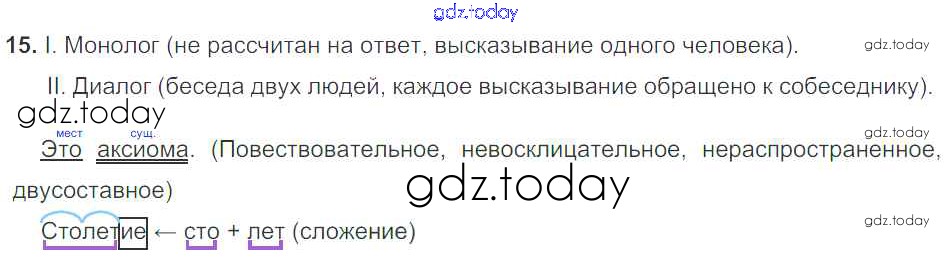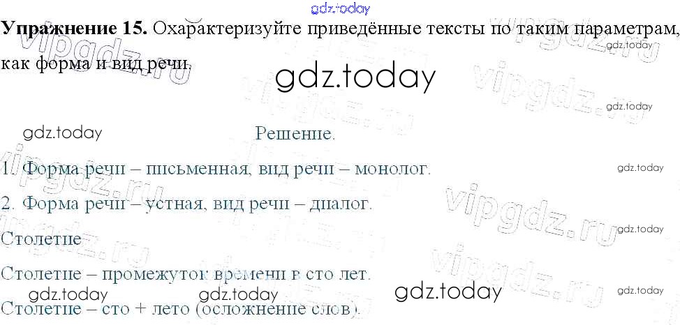 На страницах сайта gdz.today вы найдете учебный и вспомогательный материал, направленный на улучшения знаний школьной программы. ГДЗ - онлайн мир знаний Решение к упражнениям 15 Учебнику по Русскому языку для 9 класса Тростенцова, Ладыженская Просвещение 2014