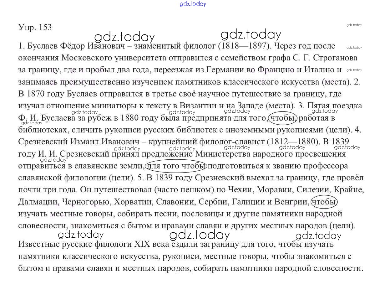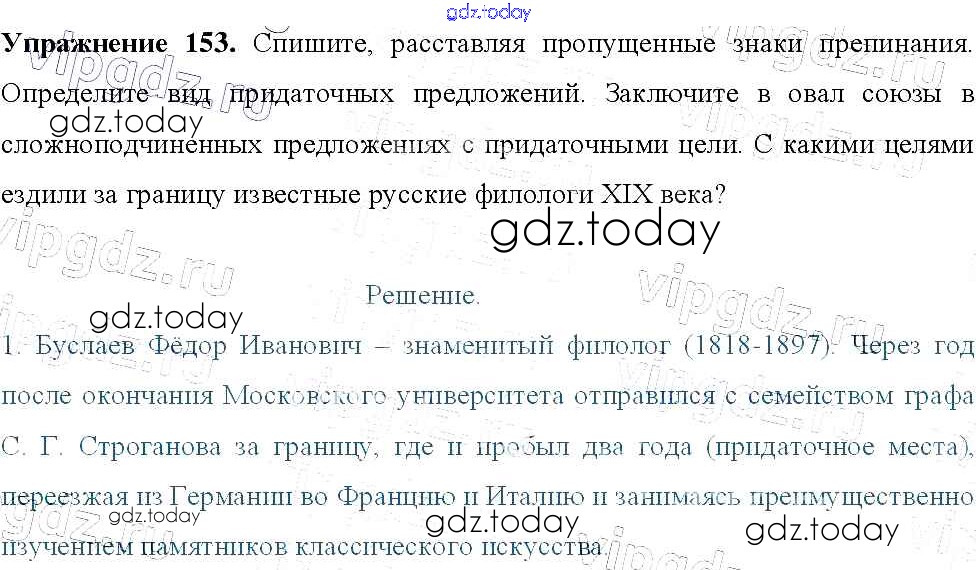 Ответы к Решение к упражнениям 153 Учебнику по Русскому языку для 9 класса Тростенцова, Ладыженская Просвещение 2014