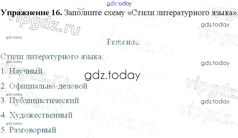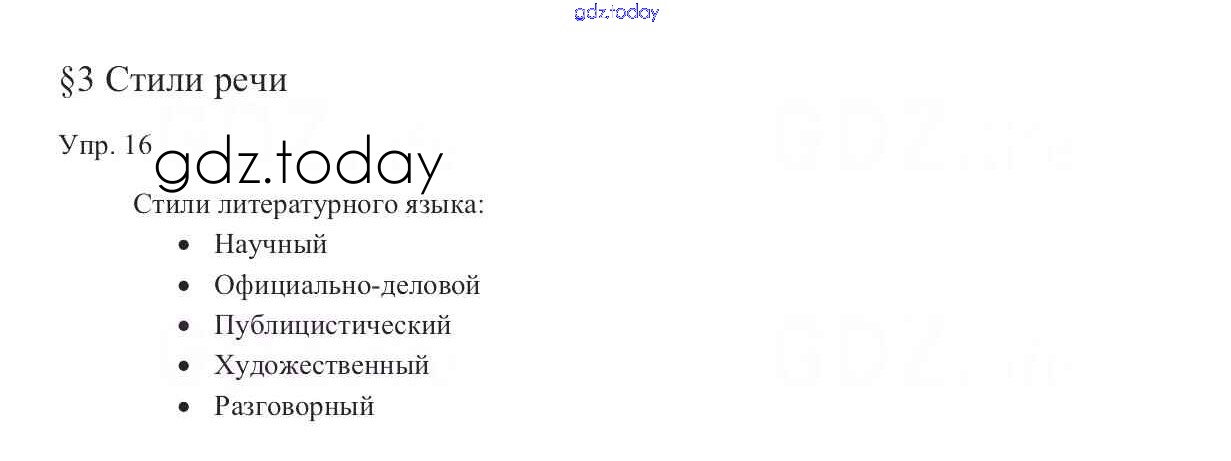 На страницах сайта gdz.today вы найдете учебный и вспомогательный материал, направленный на улучшения знаний школьной программы. ГДЗ - онлайн мир знаний Решение к упражнениям 16 Учебнику по Русскому языку для 9 класса Тростенцова, Ладыженская Просвещение 2014