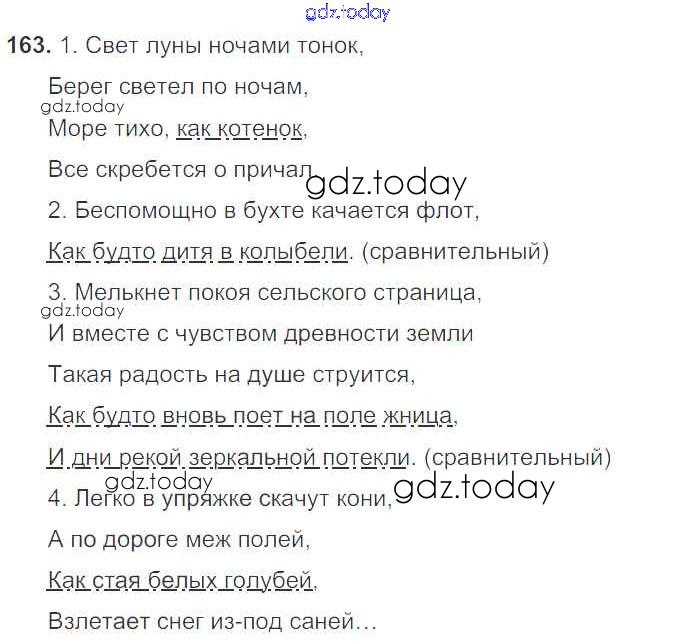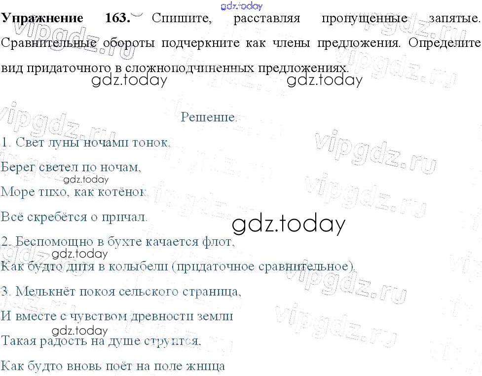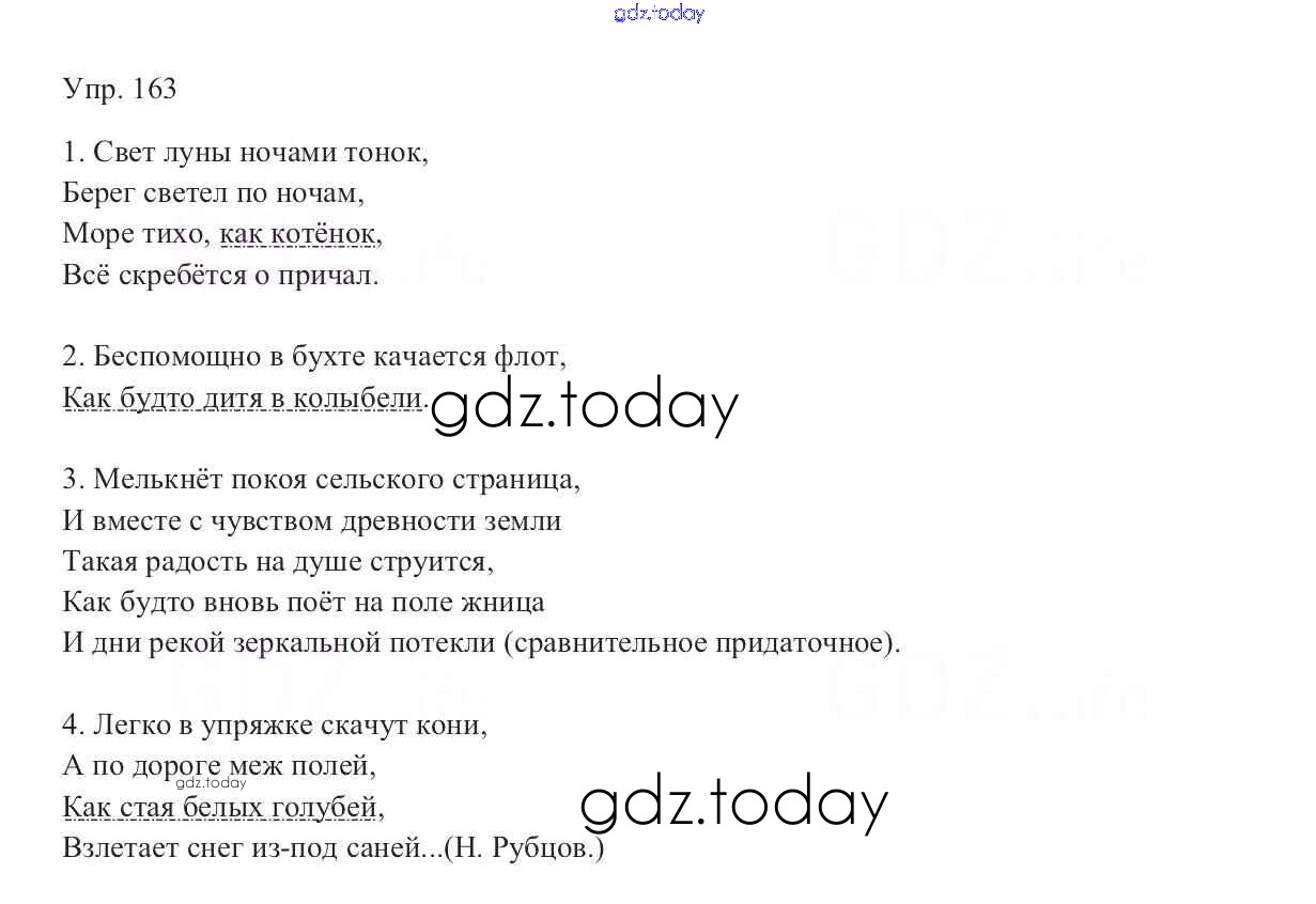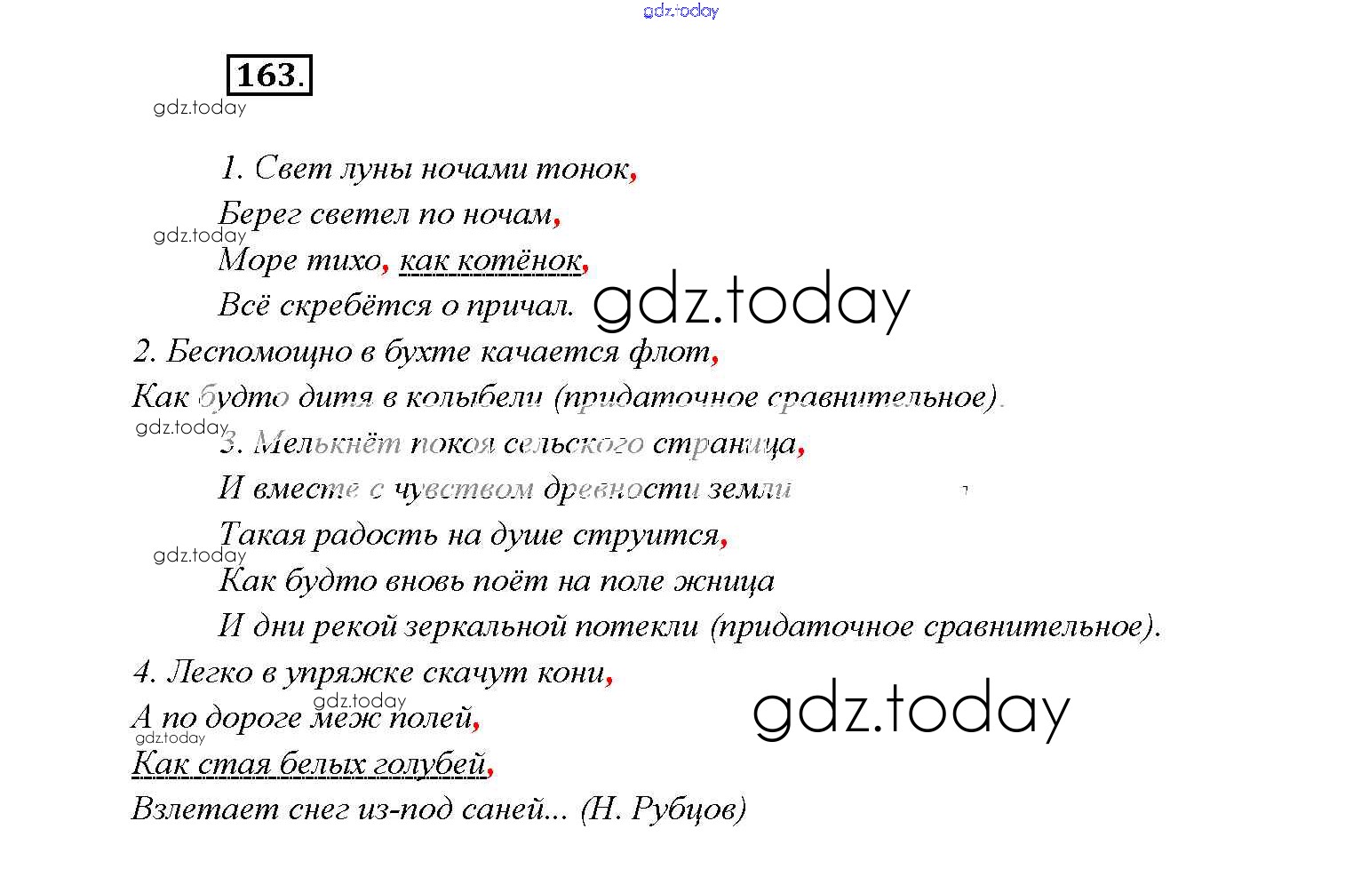 На страницах сайта gdz.today вы найдете учебный и вспомогательный материал, направленный на улучшения знаний школьной программы. ГДЗ - онлайн мир знаний Решение к упражнениям  163 Учебнику по Русскому языку для 9 класса Тростенцова, Ладыженская  Просвещение  2014