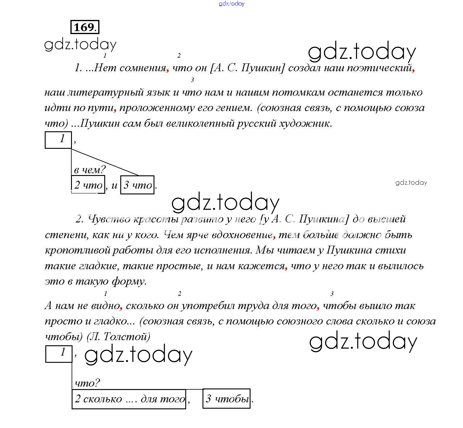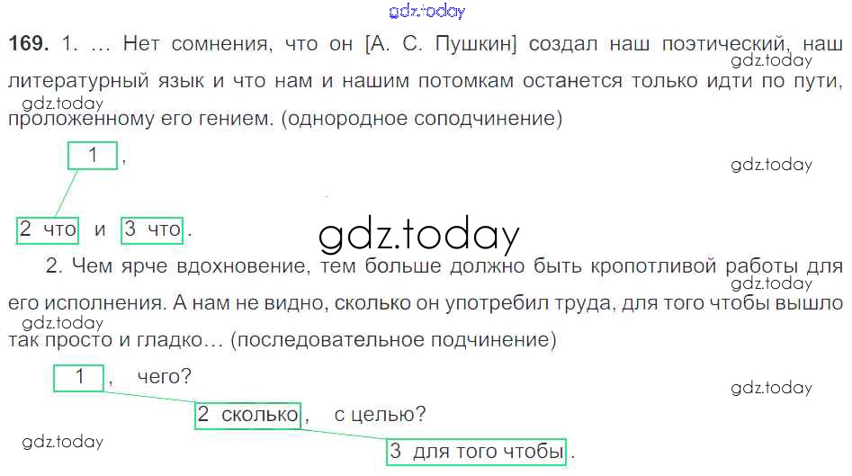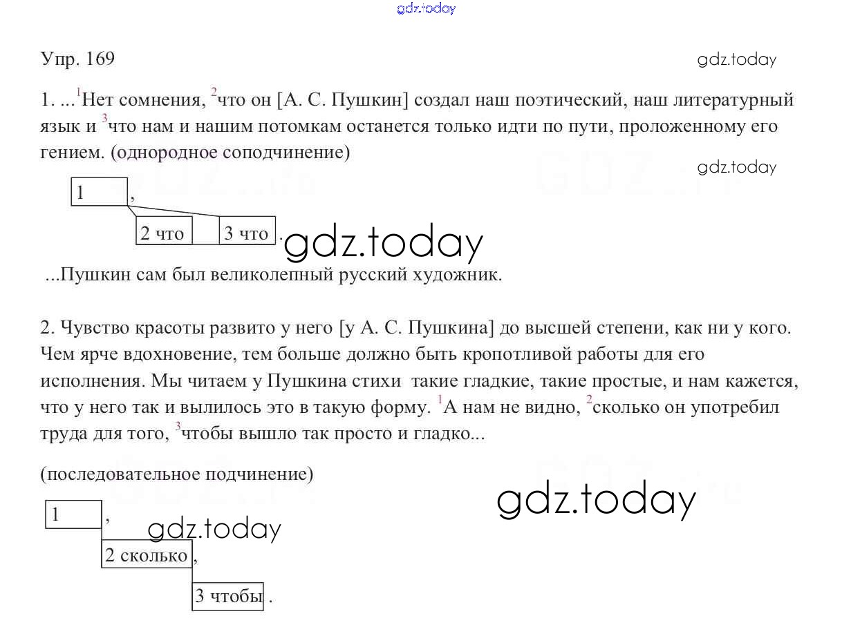 На страницах сайта gdz.today вы найдете учебный и вспомогательный материал, направленный на улучшения знаний школьной программы. ГДЗ - онлайн мир знаний Решение к упражнениям 169 Учебнику по Русскому языку для 9 класса Тростенцова, Ладыженская Просвещение 2014