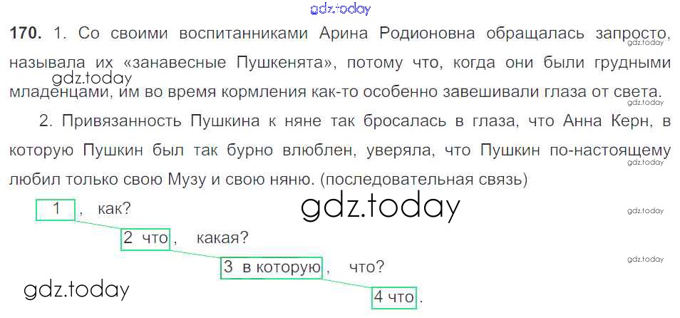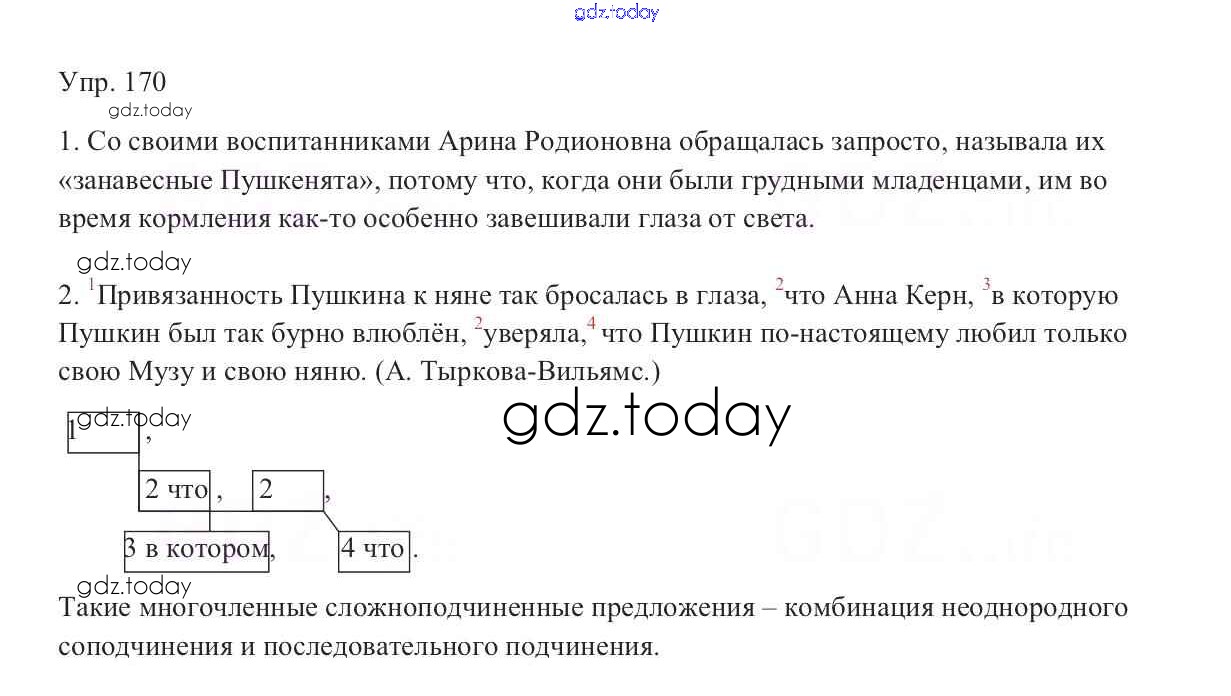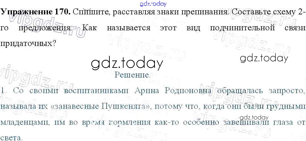 На страницах сайта gdz.today вы найдете учебный и вспомогательный материал, направленный на улучшения знаний школьной программы. ГДЗ - онлайн мир знаний Решение к упражнениям 170 Учебнику по Русскому языку для 9 класса Тростенцова, Ладыженская Просвещение 2014