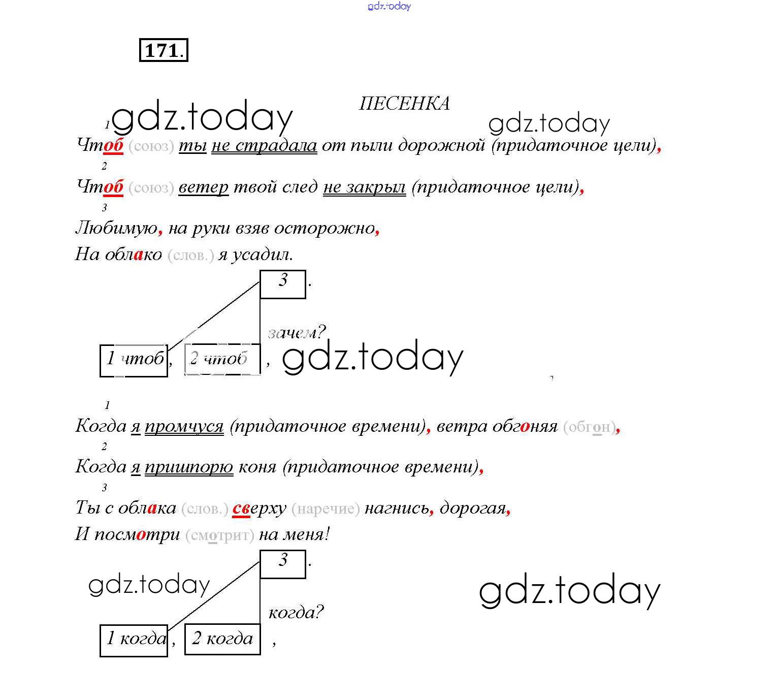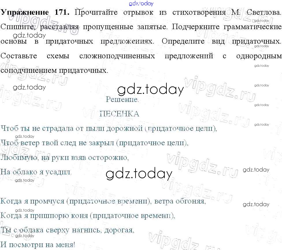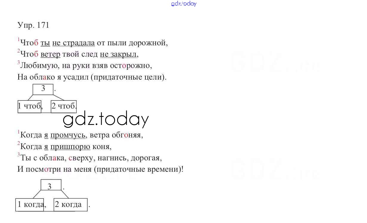 На страницах сайта gdz.today вы найдете учебный и вспомогательный материал, направленный на улучшения знаний школьной программы. ГДЗ - онлайн мир знаний Решение к упражнениям 171 Учебнику по Русскому языку для 9 класса Тростенцова, Ладыженская Просвещение 2014