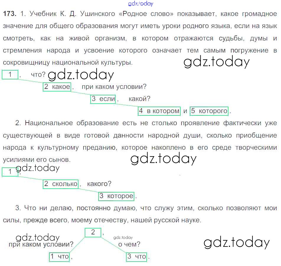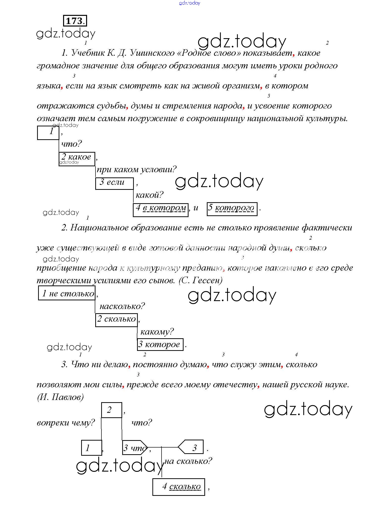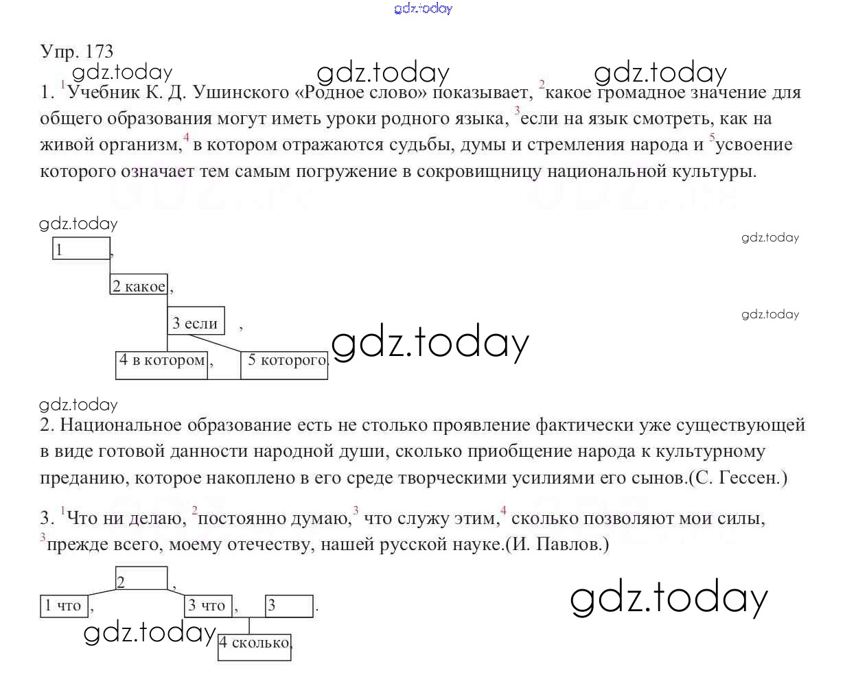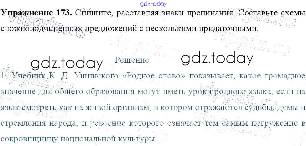 На страницах сайта gdz.today вы найдете учебный и вспомогательный материал, направленный на улучшения знаний школьной программы. ГДЗ - онлайн мир знаний Решение к упражнениям 173 Учебнику по Русскому языку для 9 класса Тростенцова, Ладыженская Просвещение 2014