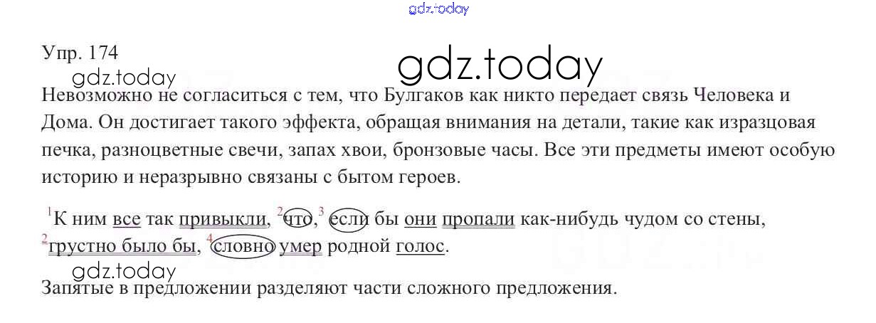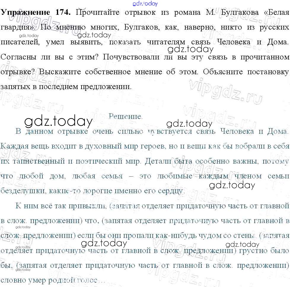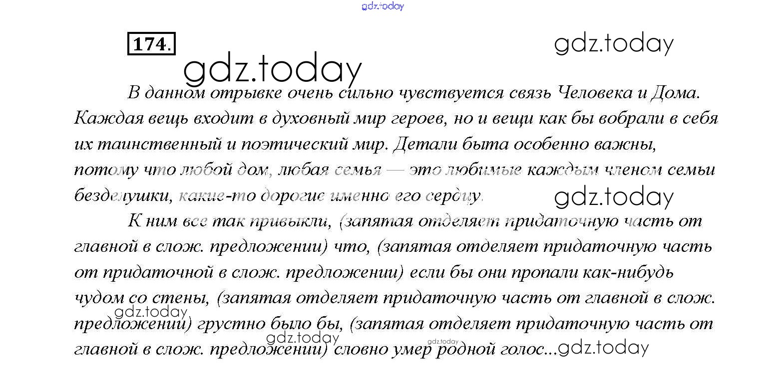 На страницах сайта gdz.today вы найдете учебный и вспомогательный материал, направленный на улучшения знаний школьной программы. ГДЗ - онлайн мир знаний Решение к упражнениям 174 Учебнику по Русскому языку для 9 класса Тростенцова, Ладыженская Просвещение 2014