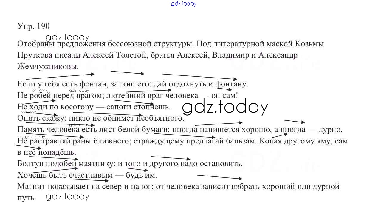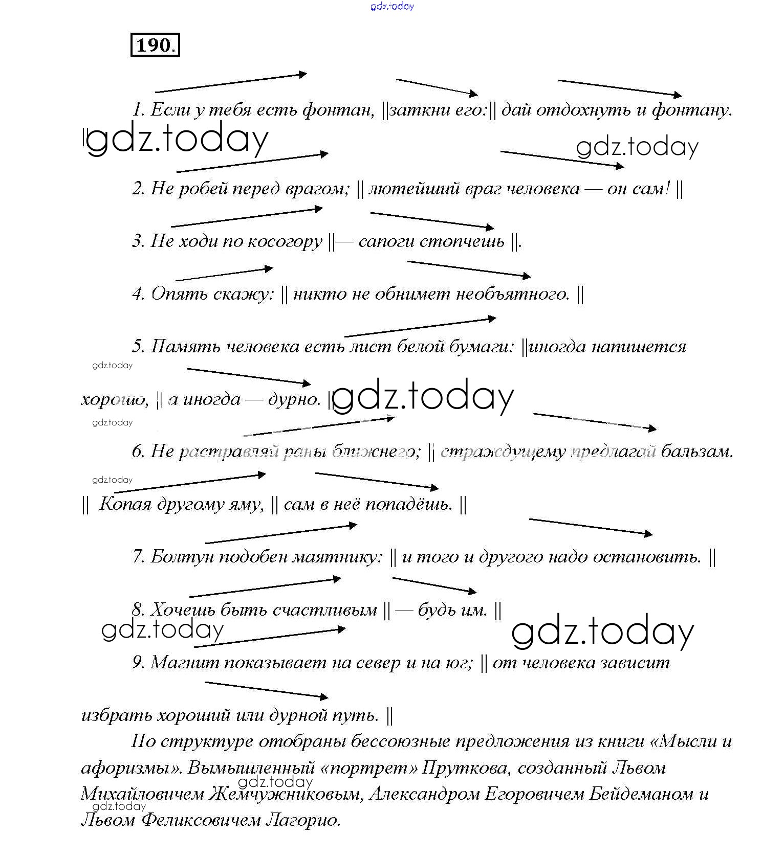 Ответы к Решение к упражнениям 190 Учебнику по Русскому языку для 9 класса Тростенцова, Ладыженская Просвещение 2014