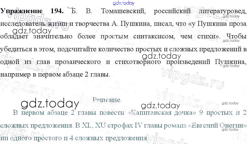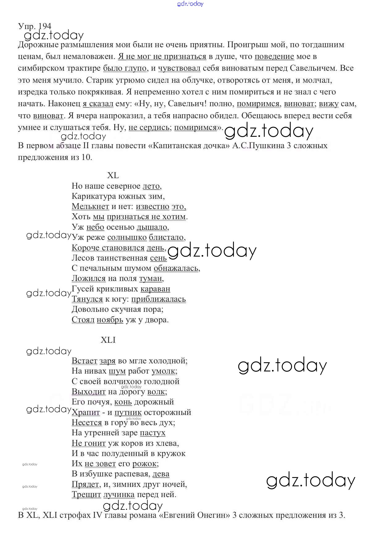 Ответы к Решение к упражнениям 194 Учебнику по Русскому языку для 9 класса Тростенцова, Ладыженская Просвещение 2014