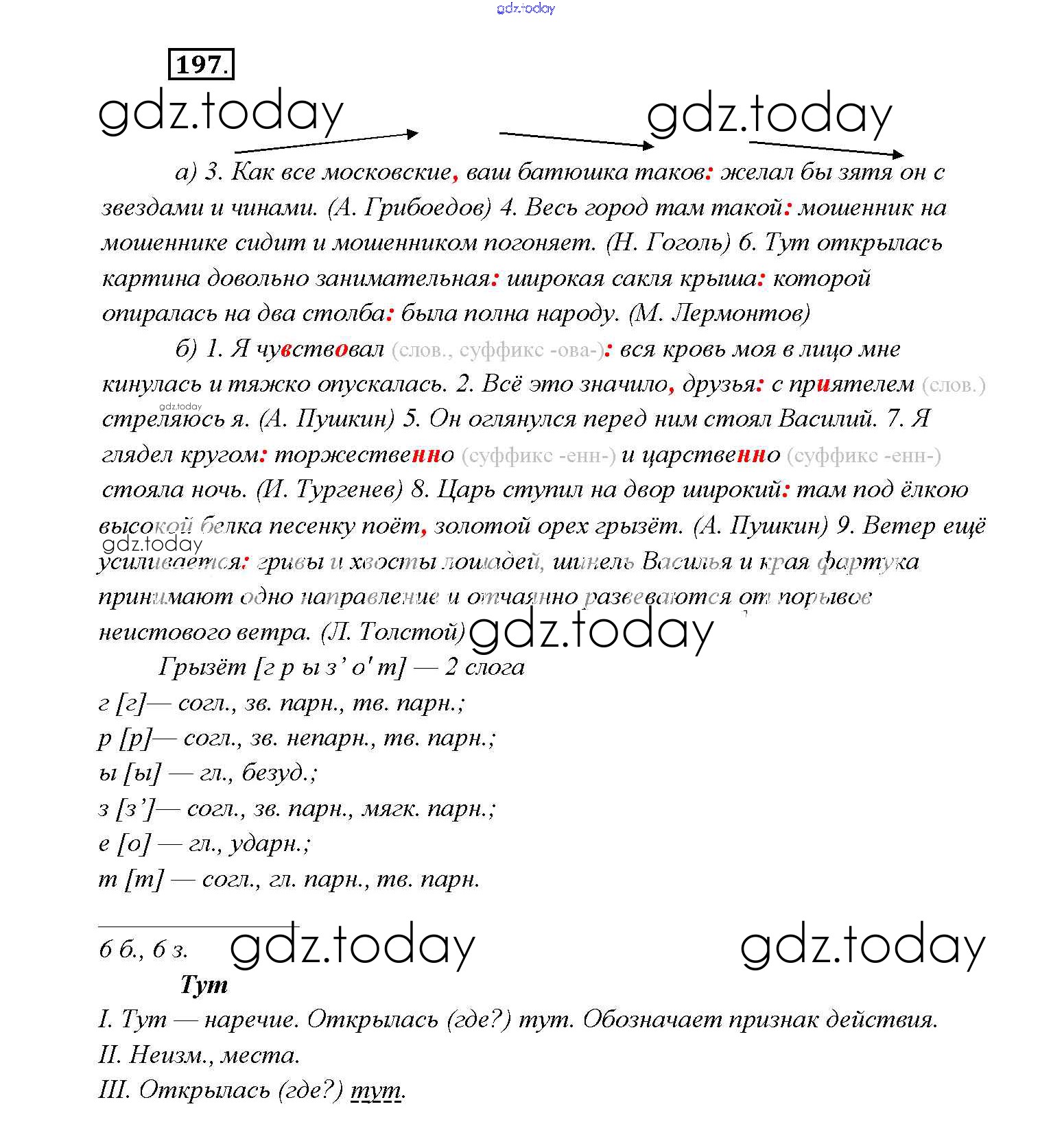 На страницах сайта gdz.today вы найдете учебный и вспомогательный материал, направленный на улучшения знаний школьной программы. ГДЗ - онлайн мир знаний Решение к упражнениям 197 Учебнику по Русскому языку для 9 класса Тростенцова, Ладыженская Просвещение 2014
