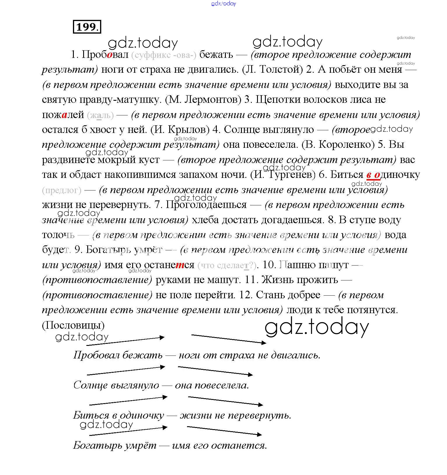 На страницах сайта gdz.today вы найдете учебный и вспомогательный материал, направленный на улучшения знаний школьной программы. ГДЗ - онлайн мир знаний Решение к упражнениям 199 Учебнику по Русскому языку для 9 класса Тростенцова, Ладыженская Просвещение 2014