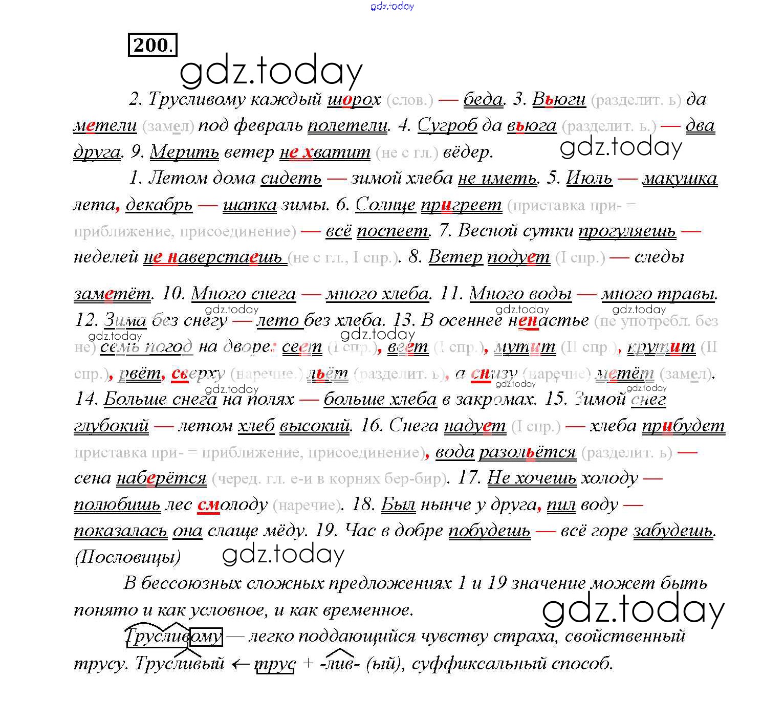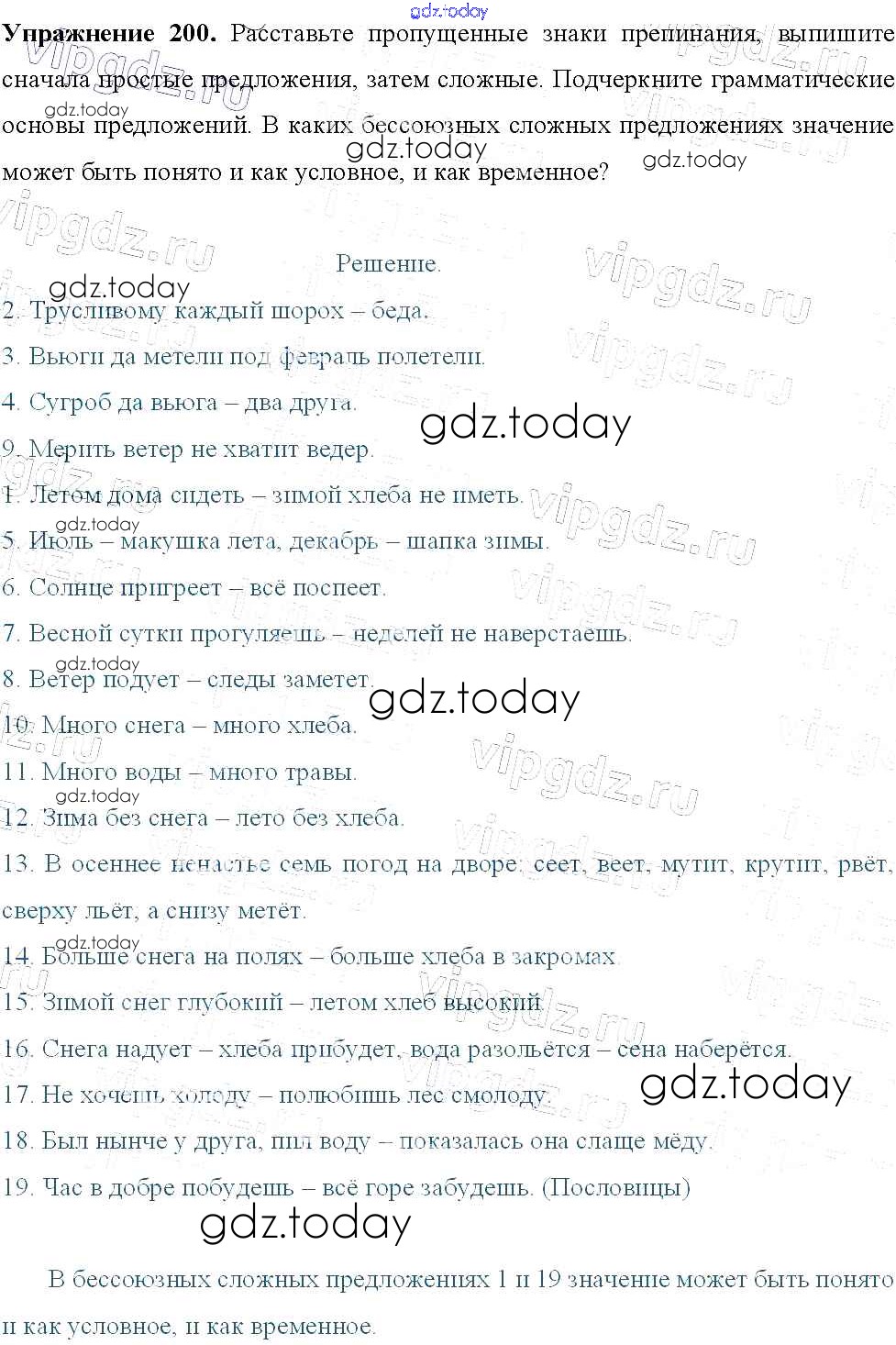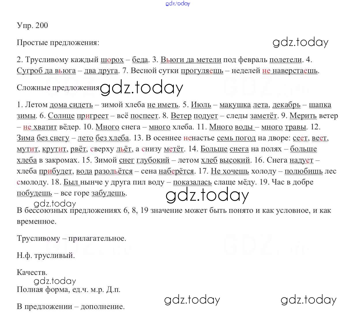 На страницах сайта gdz.today вы найдете учебный и вспомогательный материал, направленный на улучшения знаний школьной программы. ГДЗ - онлайн мир знаний Решение к упражнениям 200 Учебнику по Русскому языку для 9 класса Тростенцова, Ладыженская Просвещение 2014