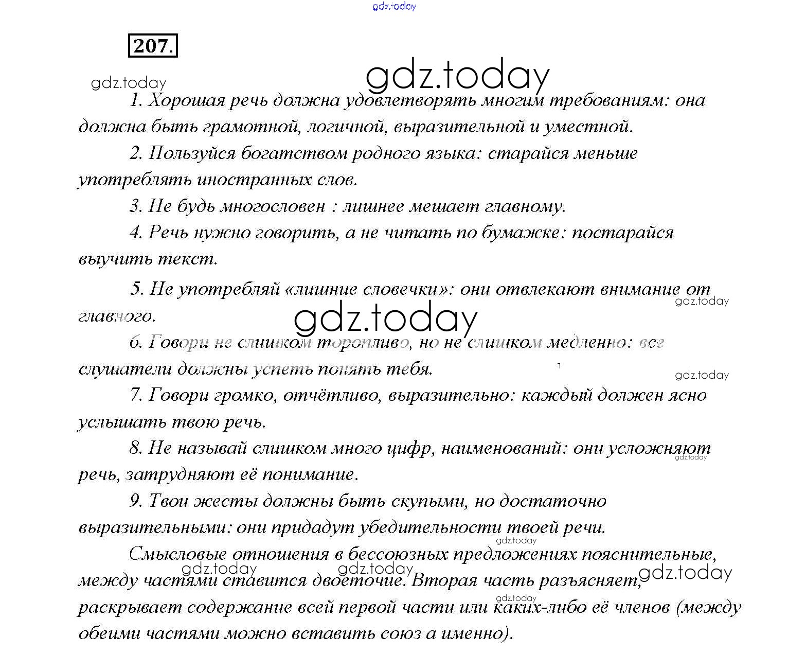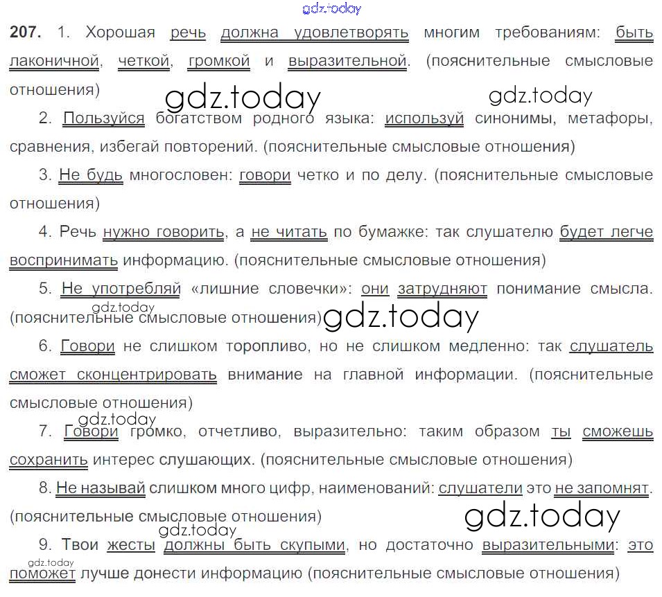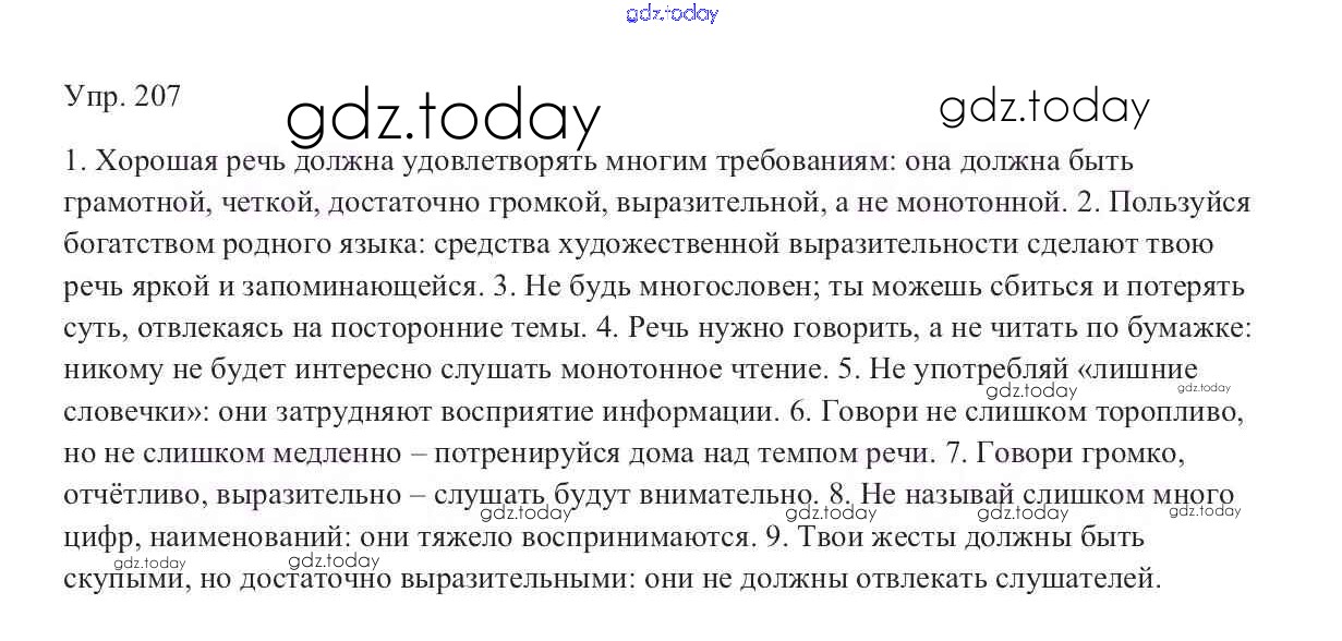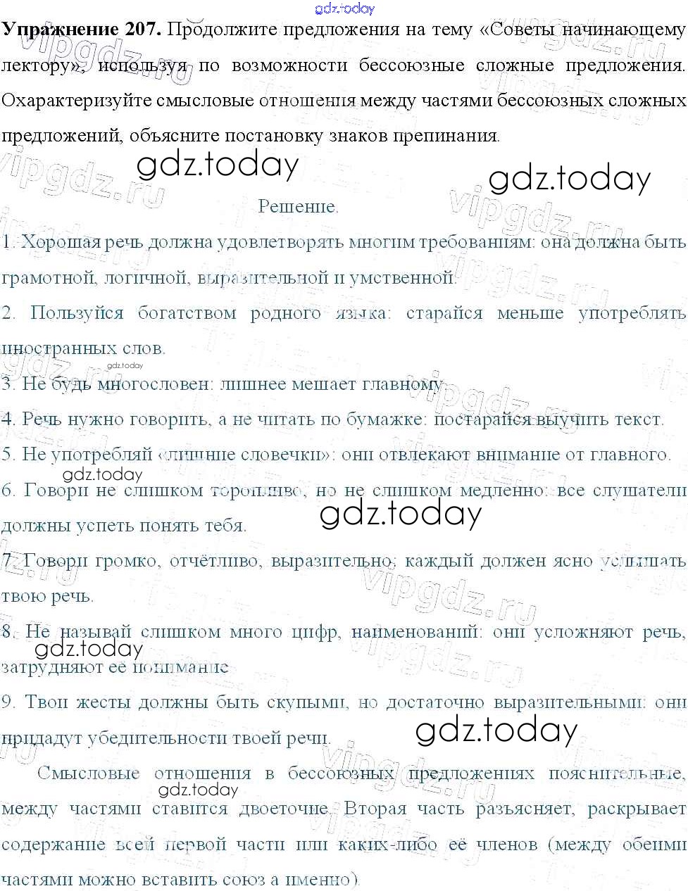 На страницах сайта gdz.today вы найдете учебный и вспомогательный материал, направленный на улучшения знаний школьной программы. ГДЗ - онлайн мир знаний Решение к упражнениям 207 Учебнику по Русскому языку для 9 класса Тростенцова, Ладыженская Просвещение 2014