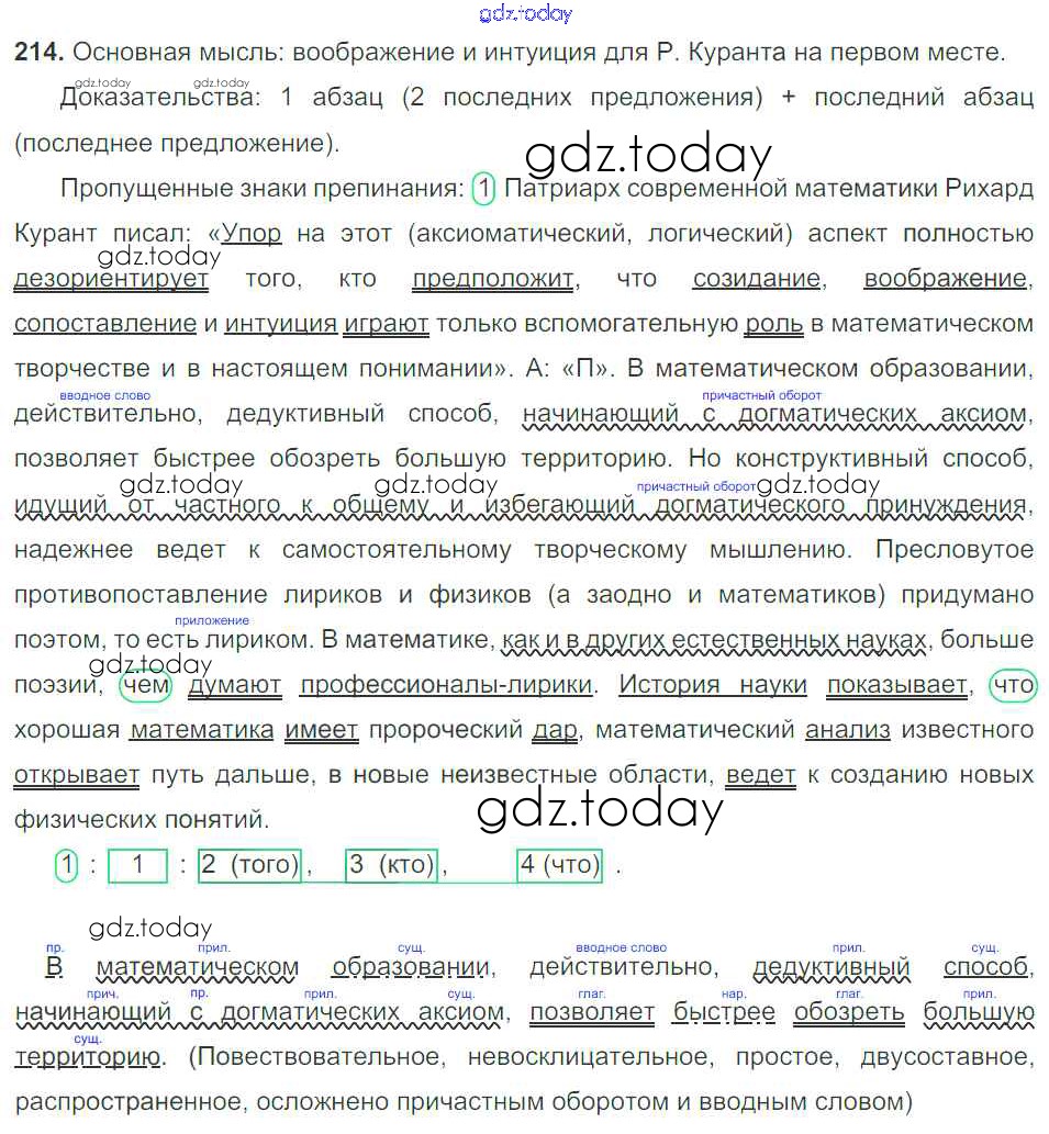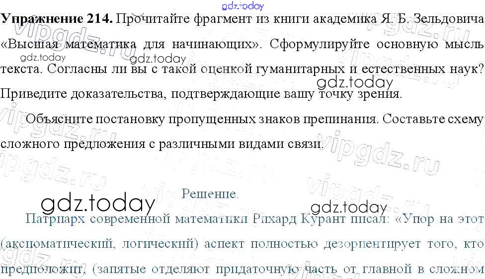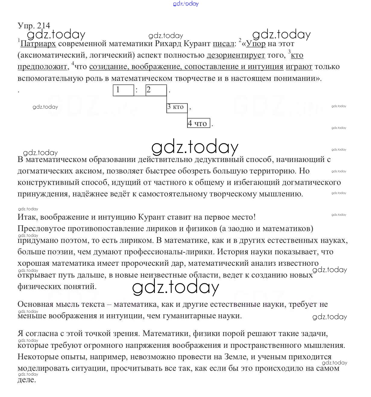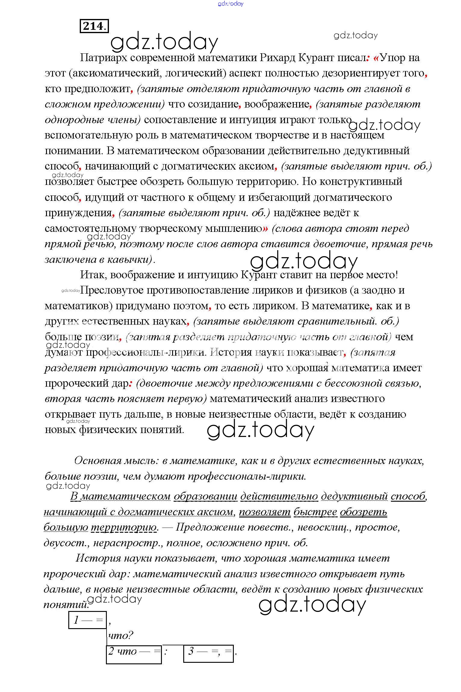 На страницах сайта gdz.today вы найдете учебный и вспомогательный материал, направленный на улучшения знаний школьной программы. ГДЗ - онлайн мир знаний Решение к упражнениям 214 Учебнику по Русскому языку для 9 класса Тростенцова, Ладыженская Просвещение 2014