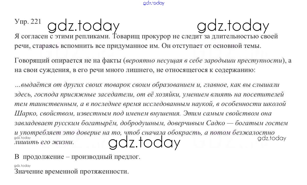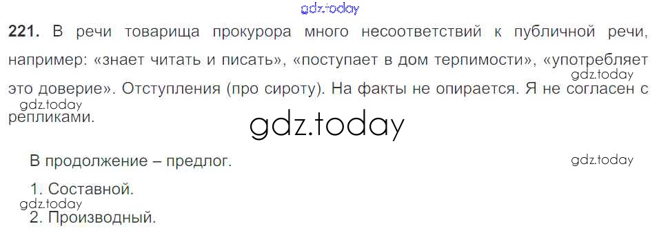 На страницах сайта gdz.today вы найдете учебный и вспомогательный материал, направленный на улучшения знаний школьной программы. ГДЗ - онлайн мир знаний Решение к упражнениям 221 Учебнику по Русскому языку для 9 класса Тростенцова, Ладыженская Просвещение 2014